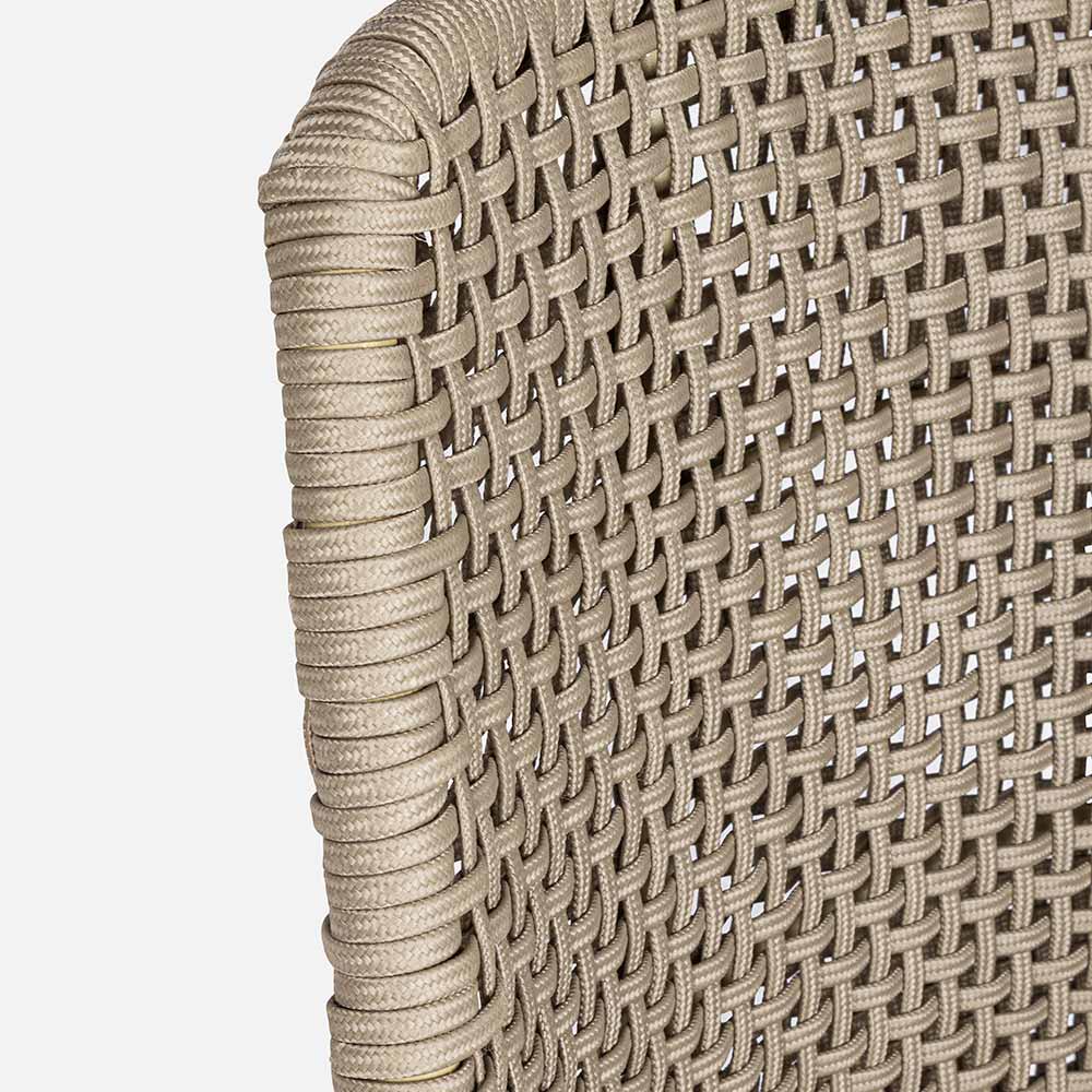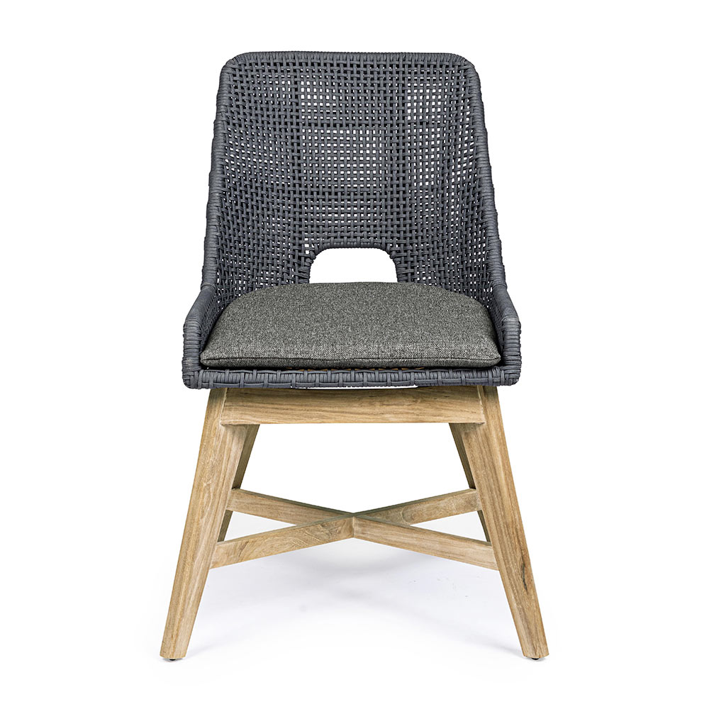 Silla de exterior con patas de madera de teca y asiento de cuerda y tela, 2 piezas.