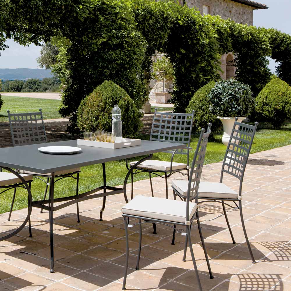 Estas sillas de exterior están diseñadas para ser extremadamente resistentes gracias a la calidad de sus materiales; de hecho, son 100 % fabricadas en Italia . Su estructura de acero está reforzada mediante un proceso de galvanizado para hacerlas resistentes a la corrosión y a los agentes atmosféricos . Su estructura permite, una vez terminadas de usarlas, ahorrar espacio apilándolas todas juntas.