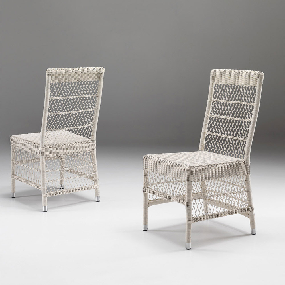 El estilo de tejido es refinado y delicado y junto con la altísima calidad de los materiales y sus formas decididas hacen que esta silla sea perfecta para decoración de interiores y exteriores, tanto para ambientes privados como contract como terrazas, porches, jardines pero también encuentran una ubicación perfecta junto a la piscina.