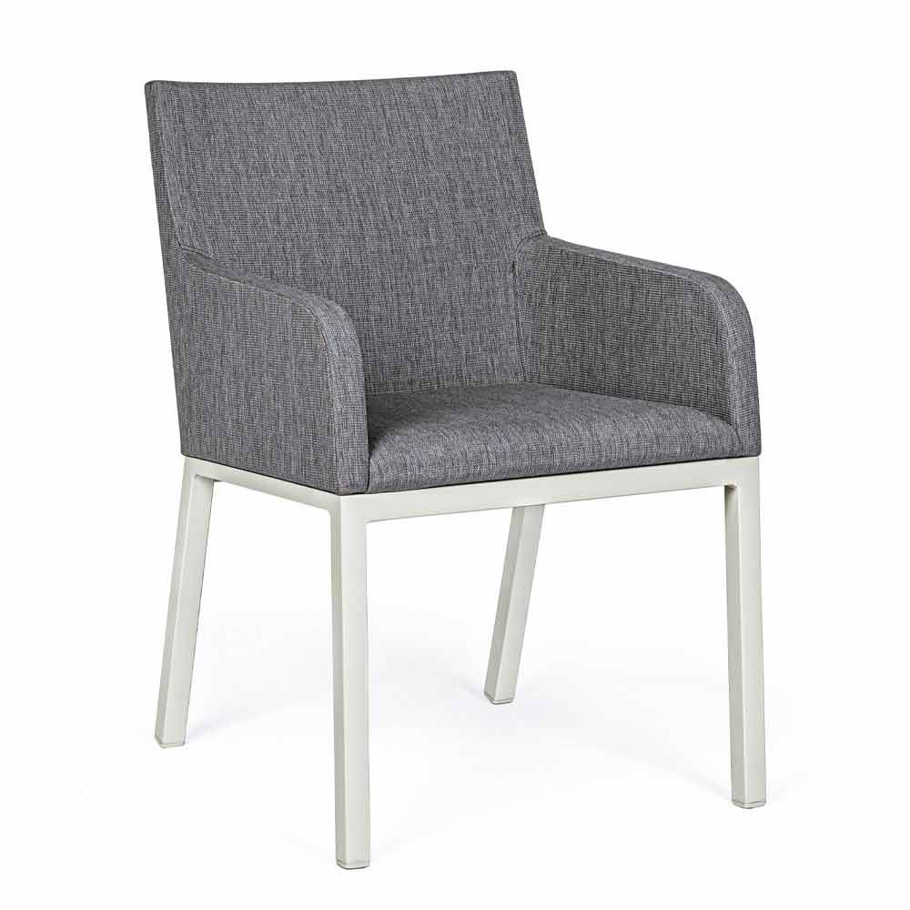 Silla de exterior tapizada en tela con patas de aluminio, 4 piezas - Nia