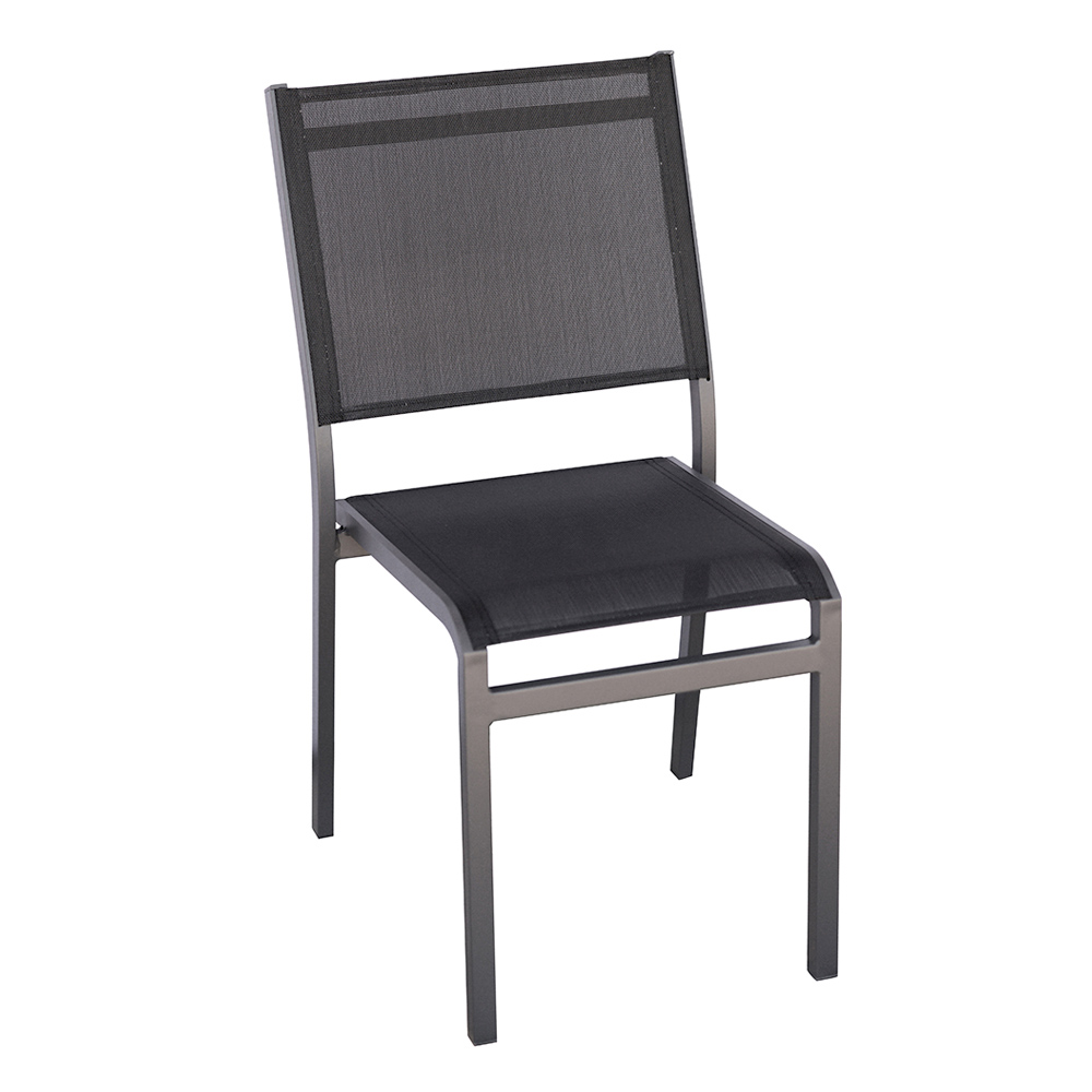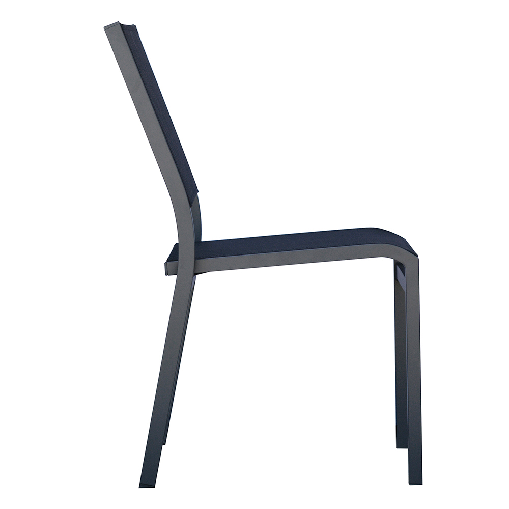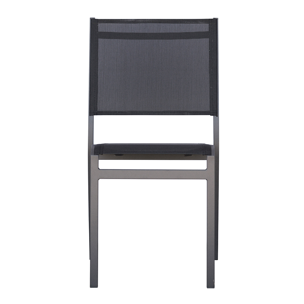 Simplicidad y sofisticación se unen en esta silla de aluminio y textilene, perfecta para amueblar con estilo cualquier espacio exterior. La estructura de aluminio garantiza ligereza, resistencia y durabilidad, mientras que el asiento y el respaldo de textileno ofrecen un confort ergonómico y una gran transpirabilidad, ideal para el verano.