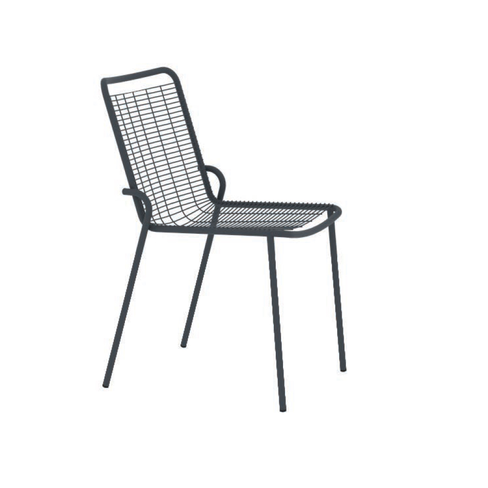 Silla de exterior apilable en hierro galvanizado pintado con polvos. Fabricada en Italia, 4 piezas.