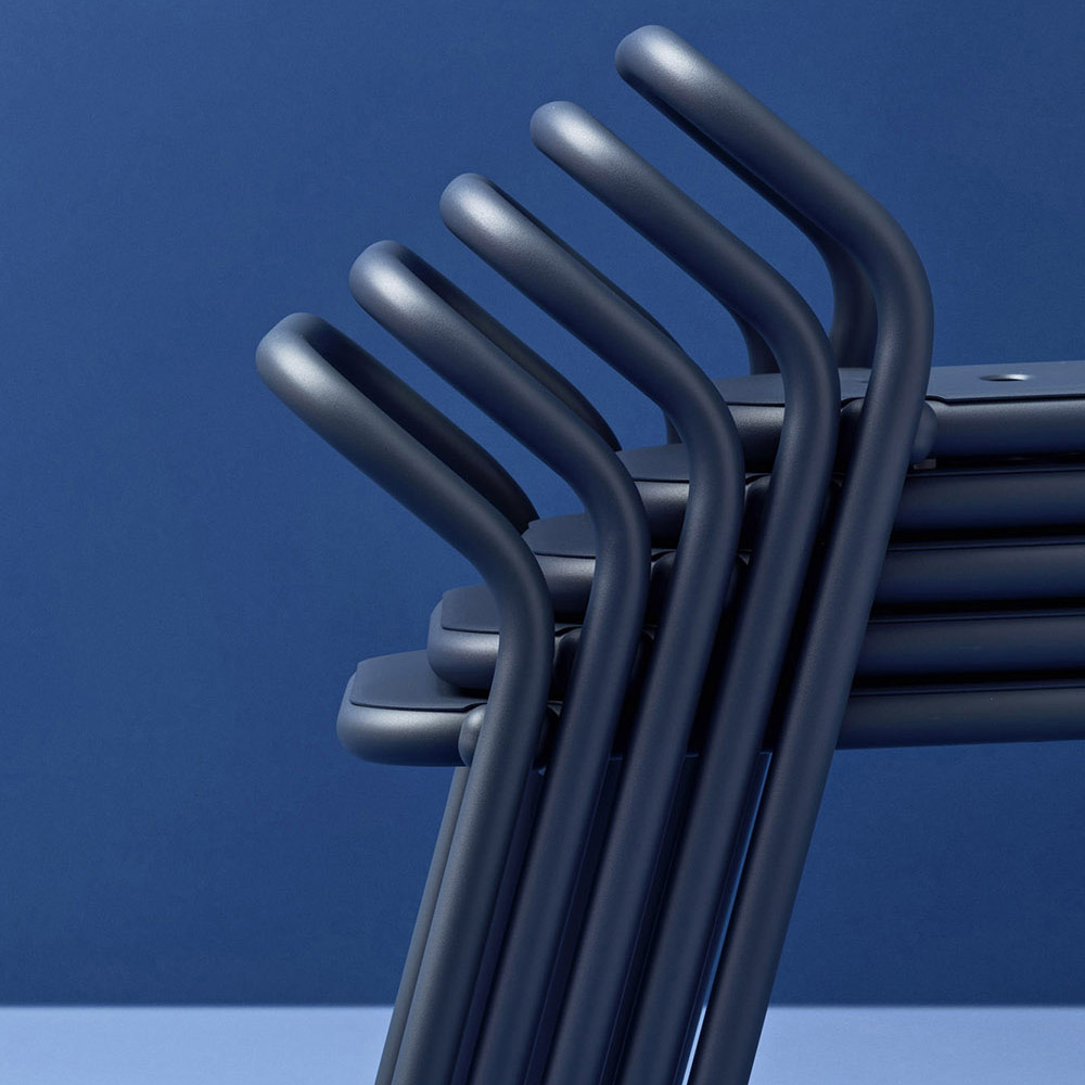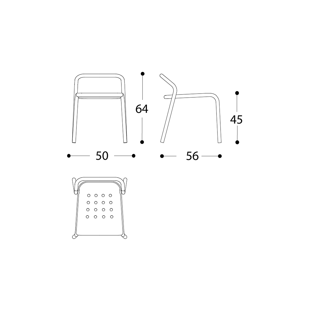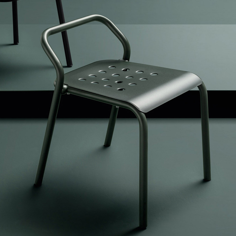 Silla de exterior fabricada en Italia con estructura en tubo de aluminiopintado y asiento en chapa de aluminio pintado en polvo. Este mueble ha sido diseñado tanto para satisfacer la vista con su estética elegante como para garantizar un confort óptimo, demostrando ser una solución moderna y funcional .
