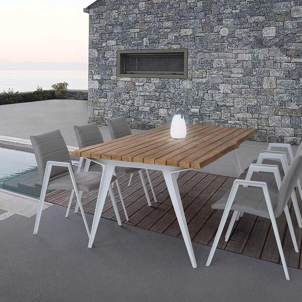 Silla de jardín moderna con reposabrazos en aluminio blanco Homemotion - Liliana