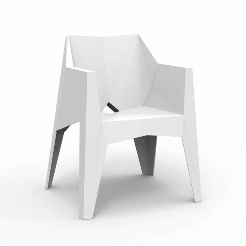 Silla de jardín Voxel by Vondom fabricada en polipropileno con inyección de aire inyectado y reforzada con fibra de vidrio. Apilable Disponible en varios colores: blanco, negro y rojo.