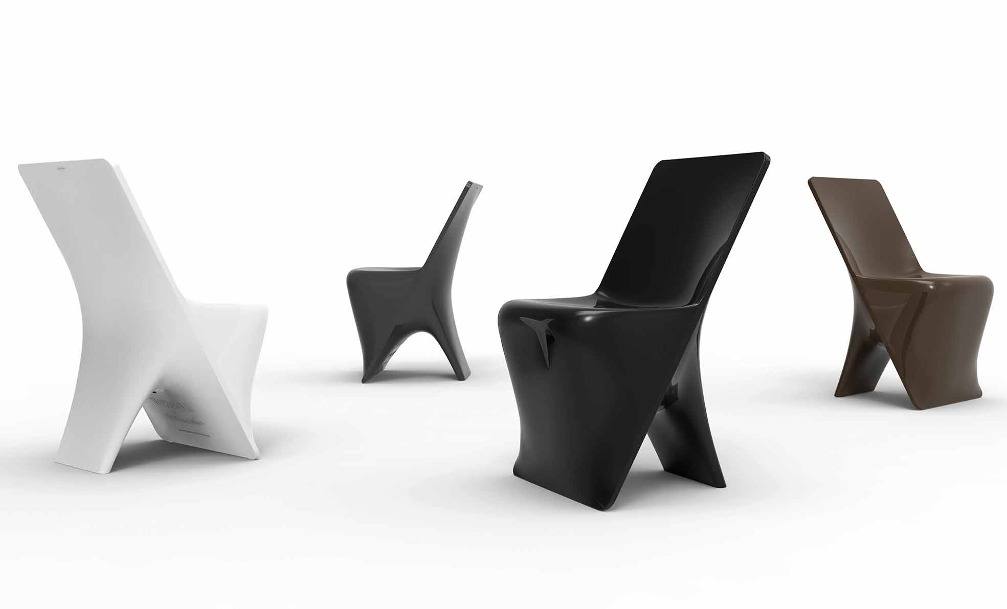 La colección Sloo by Vondom del diseñador Karim Rashid crea una fusión de líquido y plástico. Se percibe que el plástico ama fluir y ser amorfo, los resultados son formas orgánicas que se mezclan suavemente en superficies planas y lisas. La silla Sloo está hecha de polietileno, un material que permite el uso interno o externo, ya que la resina de polietileno es altamente resistente a choques y temperaturas extremas.