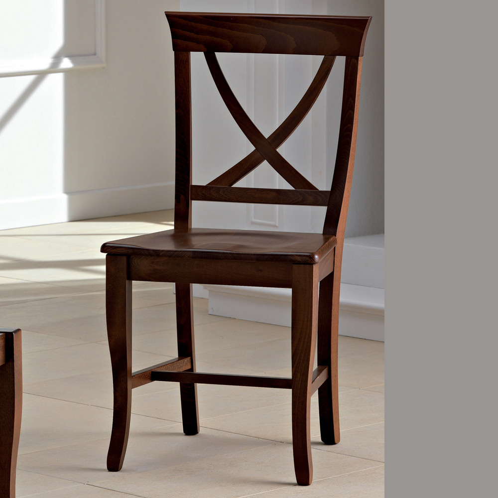 Silla de madera maciza con respaldo cruzado, lujo made in Italy.