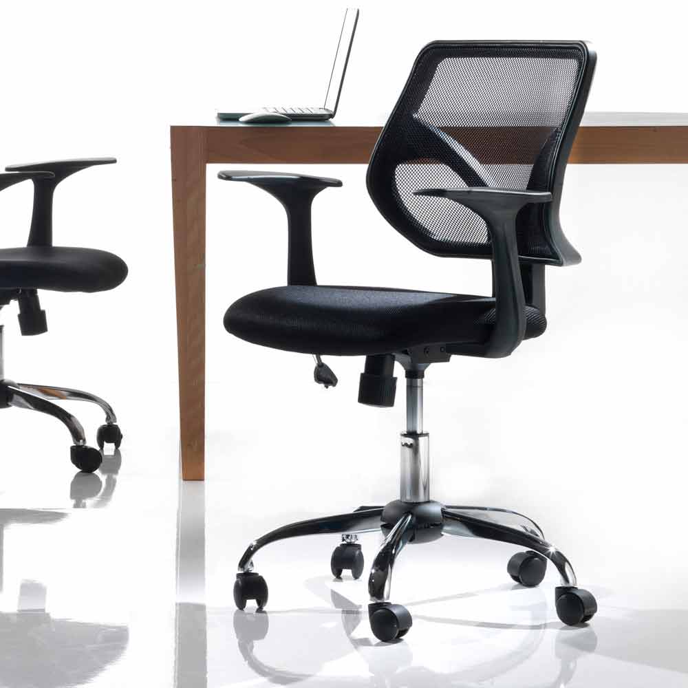 Silla de oficina con ruedas giratorias, negro y tejido - Giovanna