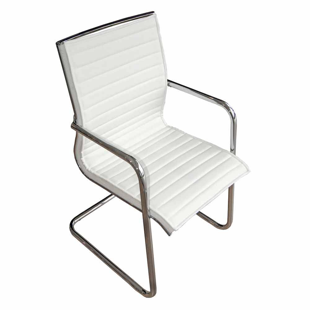 Silla de oficina tipo trineo fijo con reposabrazos y cojín de diseño made in Italy opcional.