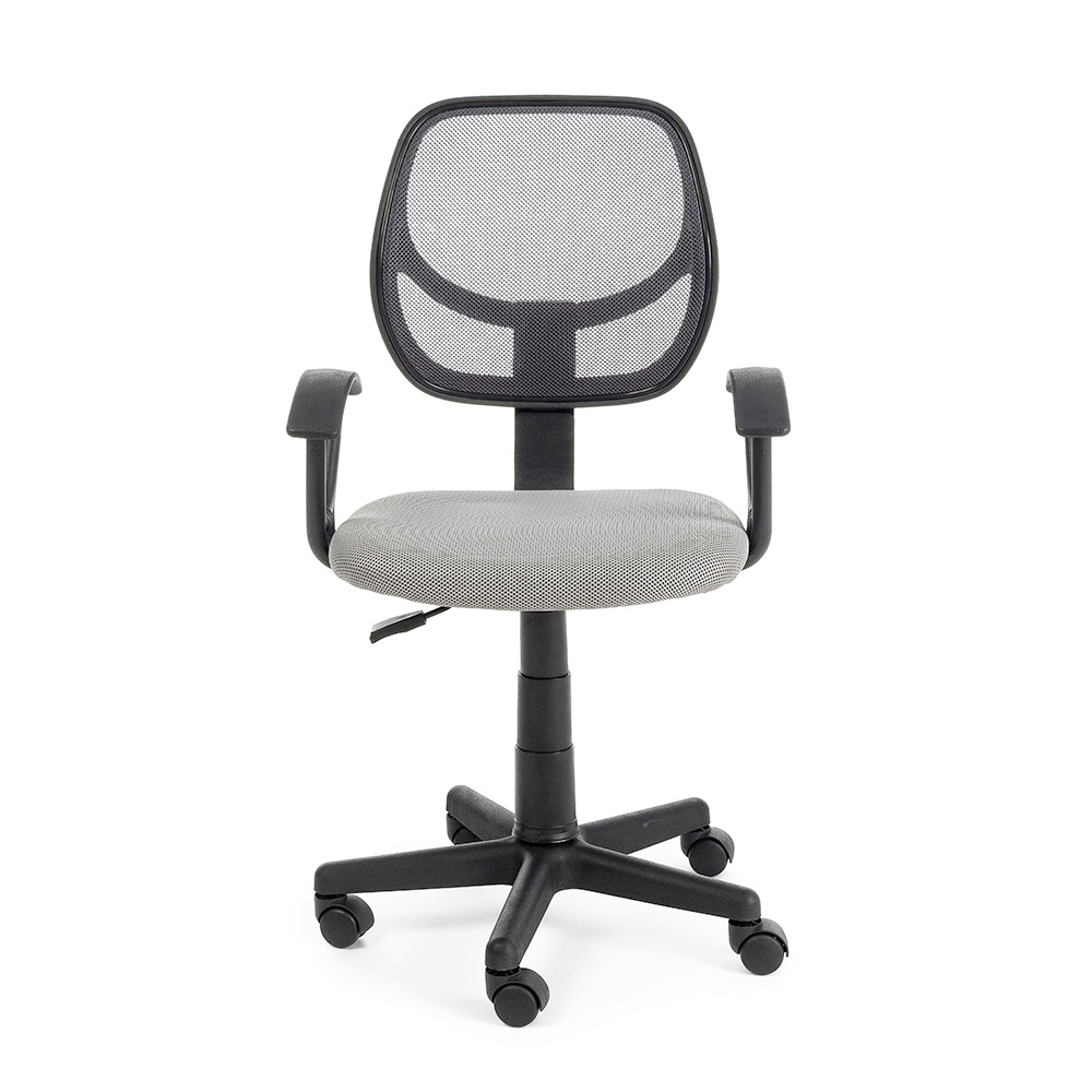 Silla de oficina giratoria en nailon con ruedas y reposabrazos, tapizado en malla de 3 acabados.