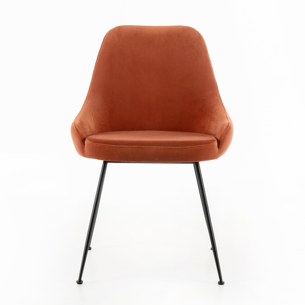 Silla de interior realizada con asiento acolchado y respaldo tapizado en tejido de microfibra , patas de metal pintado de negro.