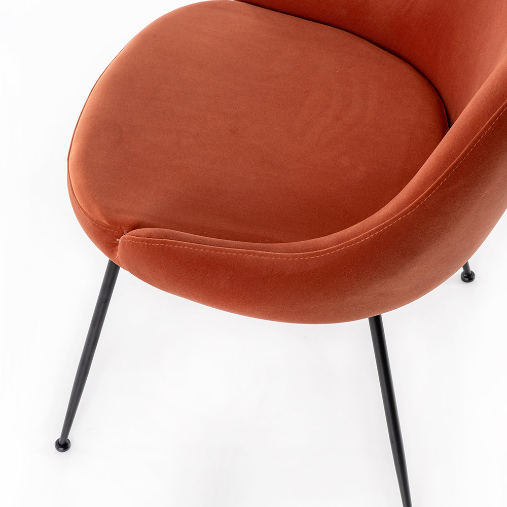 Elemento de decoración elegante y diferenciado gracias a la sinuosidad de las formas del respaldo y del asiento. Debe su encanto a la armonía de la estructura que crea una forma envolvente, capaz de garantizar el máximo confort con estilo y elegancia. Aporta un toque de color al salón y combina armoniosamente con mesas de estilo contemporáneo y moderno.