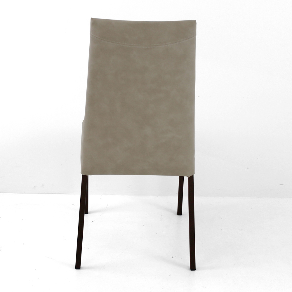 Silla de comedor íntegramente fabricada en Italia en polipiel rebelde color marfil con patas lacadas mate color óxido. La silla de diseño moderno y cautivador se caracteriza por un pespunte de media luna en el respaldo y un respaldo curvo que la hace muy cómoda y le da un toque de originalidad único. Gracias a sus acabados sencillos y suaves, es una idea perfecta para todos aquellos a los que les encanta amueblar sus salones, comedores y cocinas con gusto y estilo sin renunciar a la funcionalidad y la comodidad.