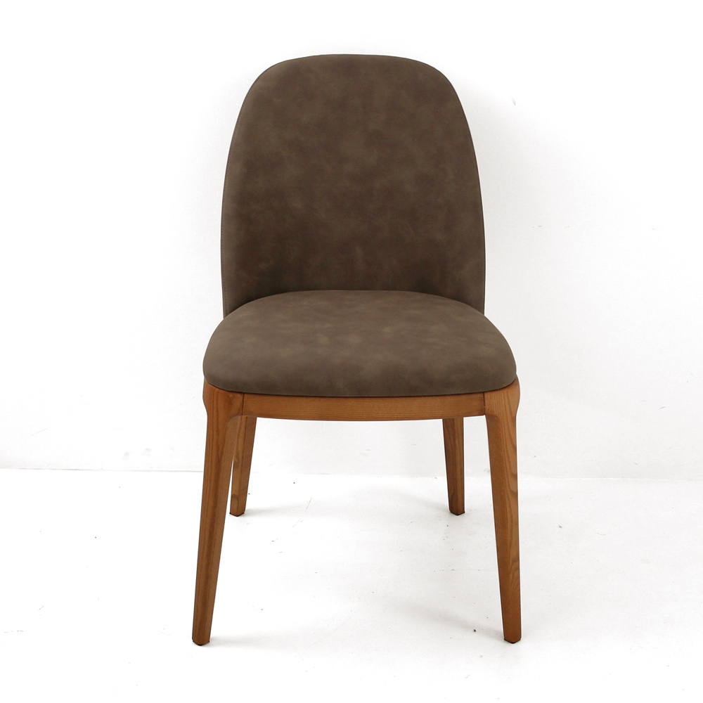 Silla de salón íntegramente fabricada en Italia con estructura en madera de fresno teñida nogal frisè y asiento en polipiel rebelde color cuero. La silla tiene un gusto clásico y atemporal y ofrece una opción de refinado confort de asiento . Sus líneas sinuosas y muy elegantes lo hacen idóneo para completar el mobiliario de cualquier salón, cocina y comedor, aportando a la estancia un toque refinado y único.