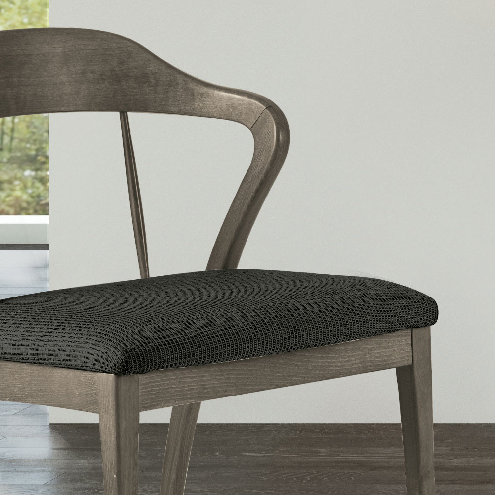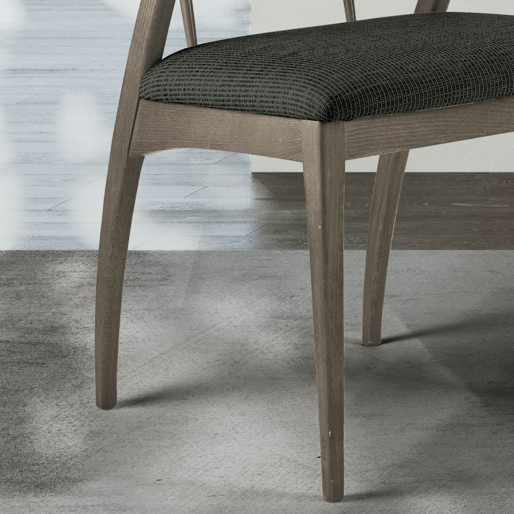 Silla de diseño moderno fabricada en Italia con carcasa de madera maciza de haya con acabado ahumado y asiento tapizado en tejido MX 18. En su interior combina estilo y sencillez , características que surgen del uso de materiales sencillos, que, combinados con formas esenciales y elegantes, dan vida a un producto con un diseño original, perfecto para cualquier ambiente. Su asiento envuelve a toda la persona, asegurando un confort único y óptimo . El producto forma parte de la nueva línea de productos modernos elaborados respetando la naturaleza.