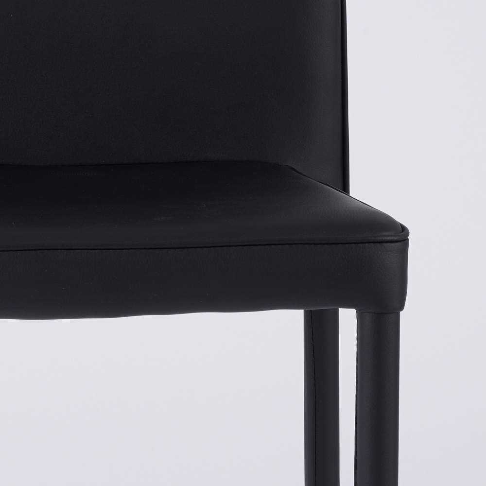 Silla de diseño moderno con carcasade acero completamente revestida en ecopielnegra . Un complemento de decoración que se adapta fácilmente a cualquier contexto estilístico en el que se inserta, ayudando a crear una atmósfera única y elegante . La ligereza estética que caracteriza su diseño lo hace perfecto para completar espacios domésticos como comedores y cocinas pero también espacios contract como bares y restaurantes con personalidad a través de sus formas sencillas y depuradas . El producto forma parte de la nueva línea de productos modernos elaborados respetando la naturaleza.