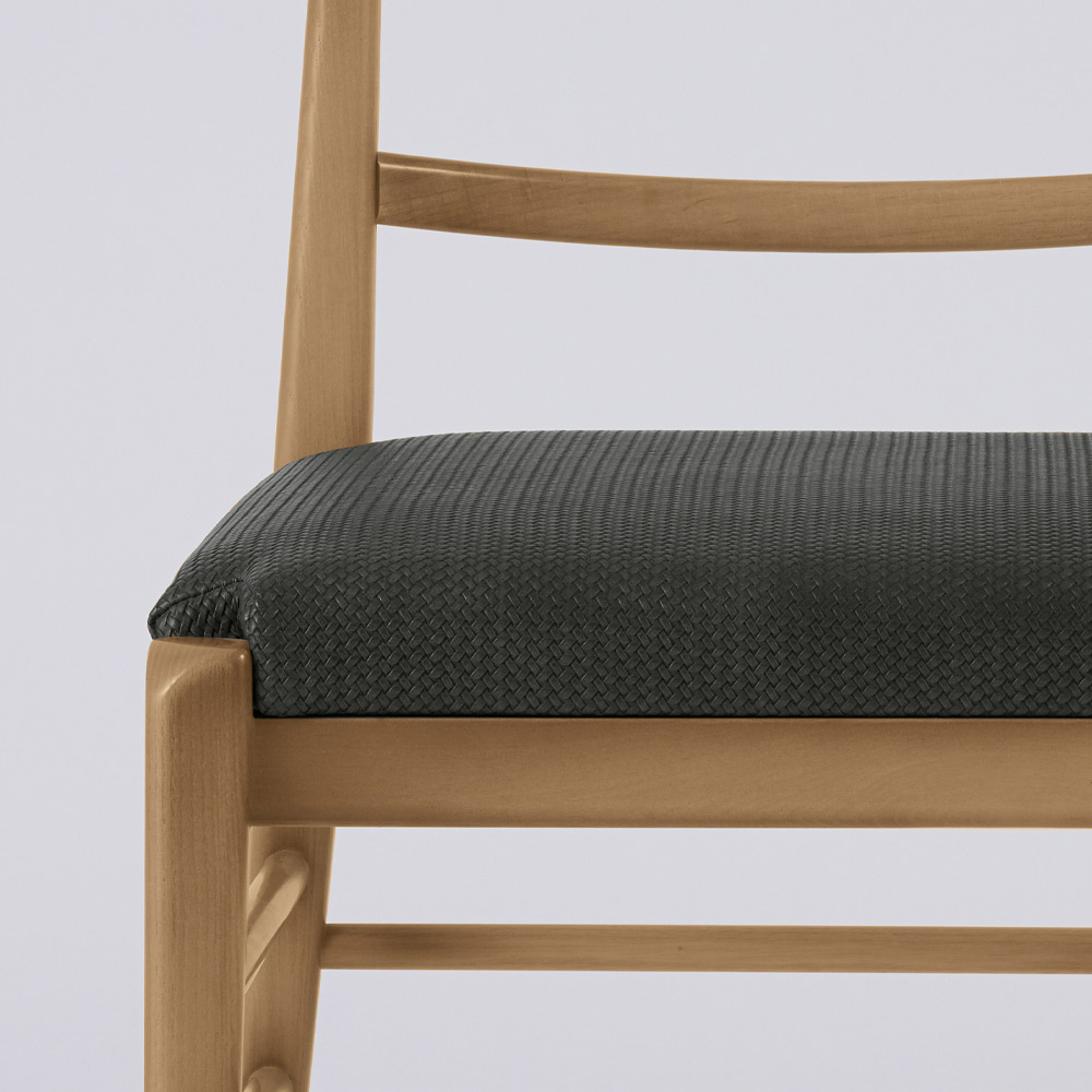 Silla de madera con travesaños y asiento de tela Made in Italy.