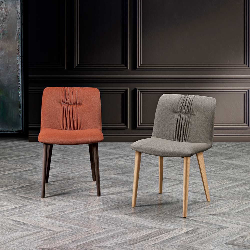 Transforma tu comedor en un espacio más cómodo y elegante con la moderna silla monocasco con asiento tapizado en tela cristal de fácil limpieza y disponible en diferentes variantes de color: