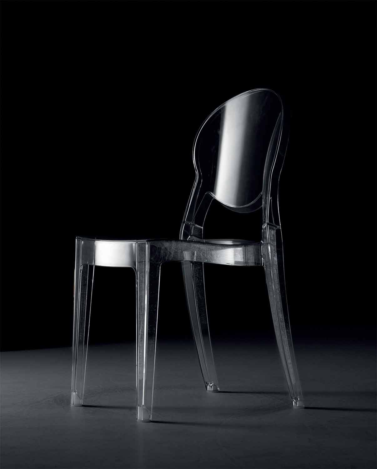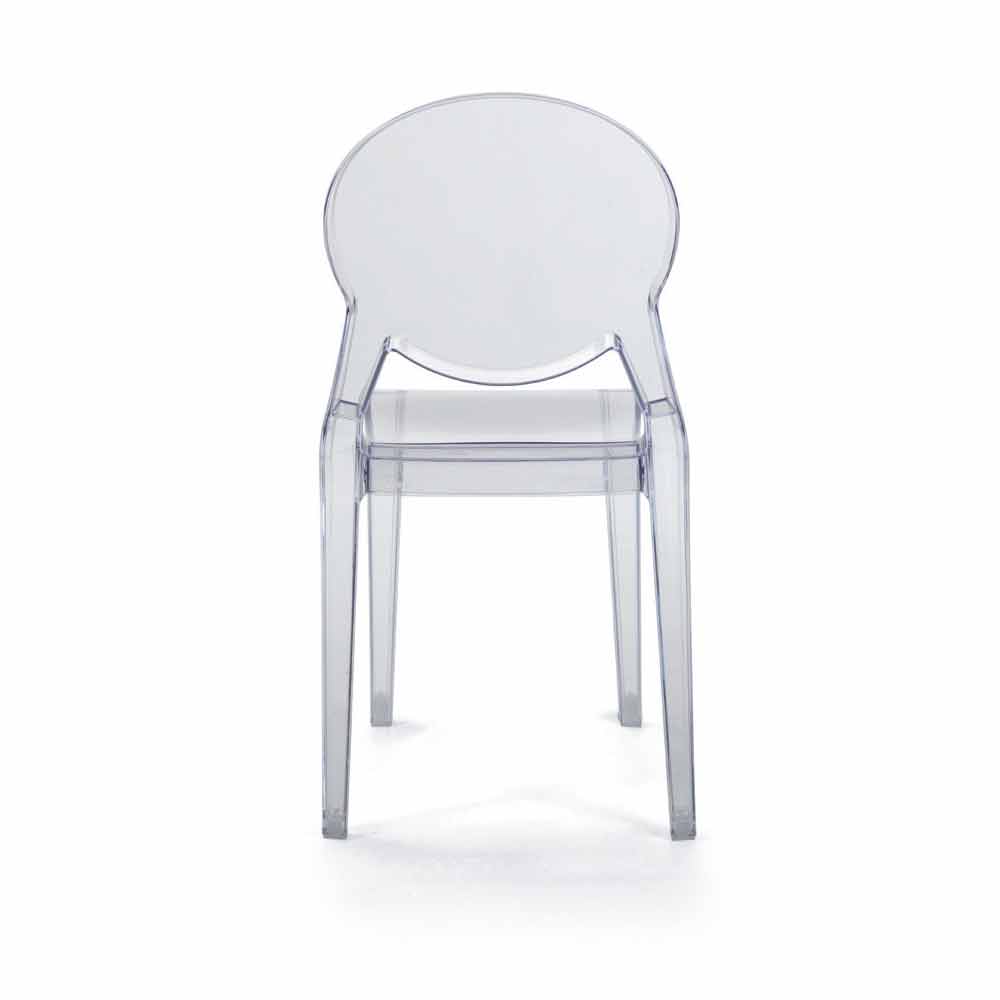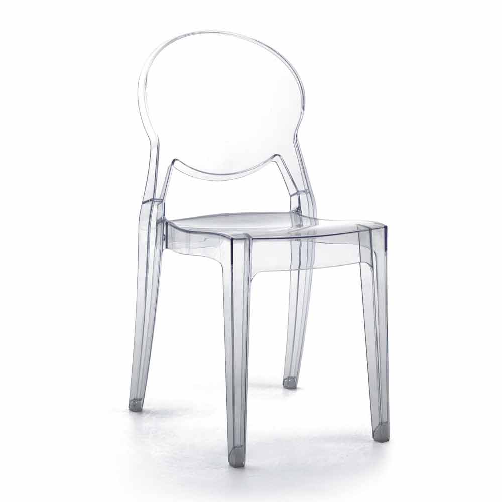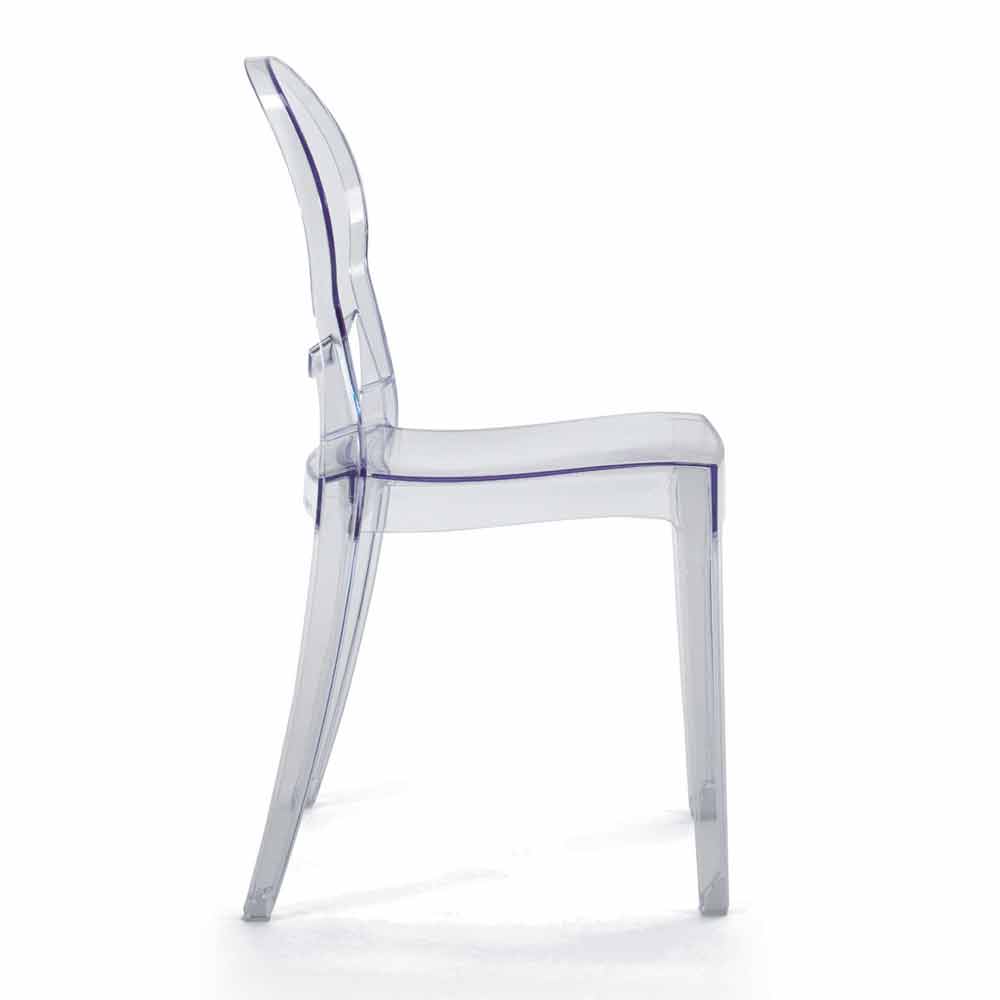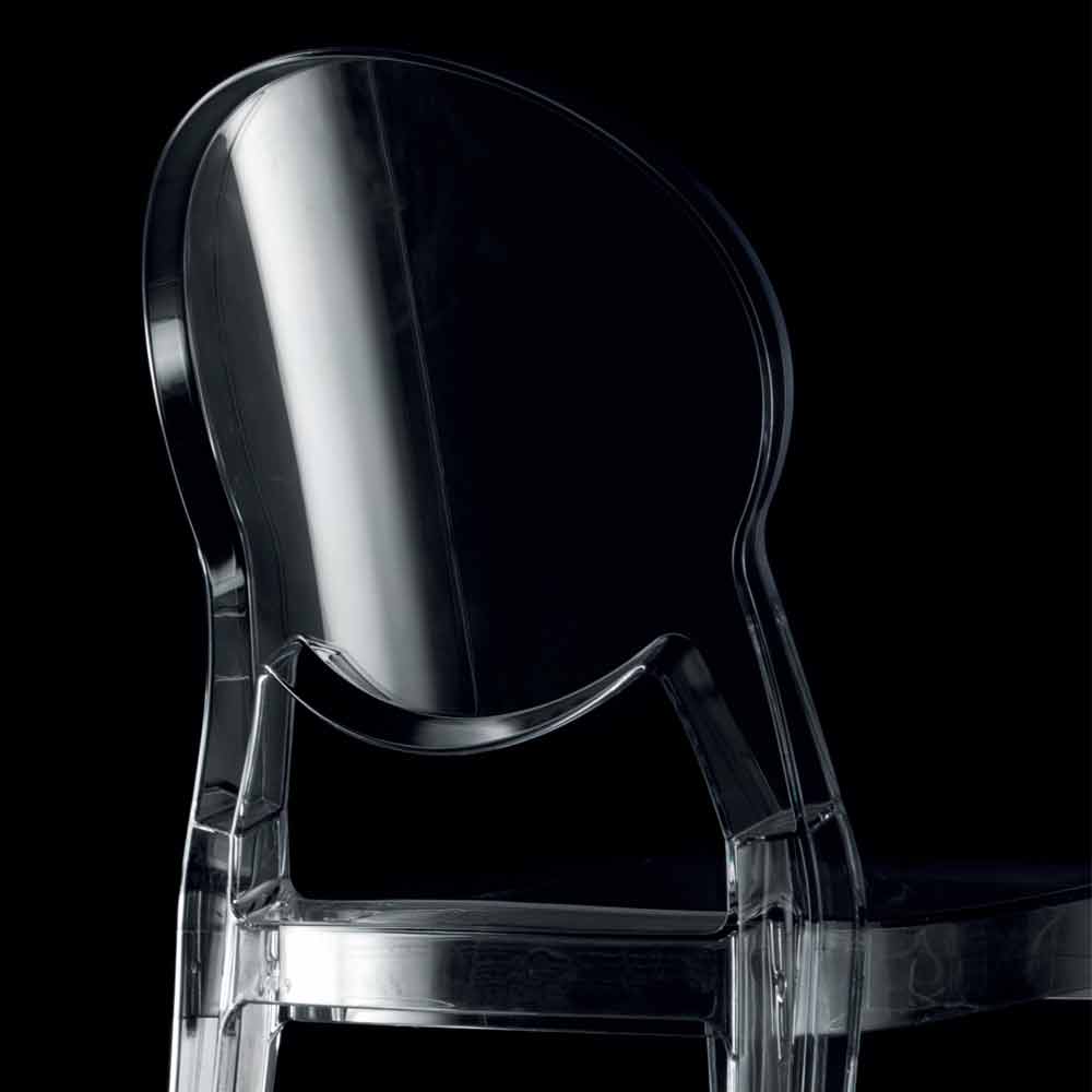 Silla apilable de diseño moderno apta para uso exterior e interior en policarbonato transparente, fabricada en Italia.
