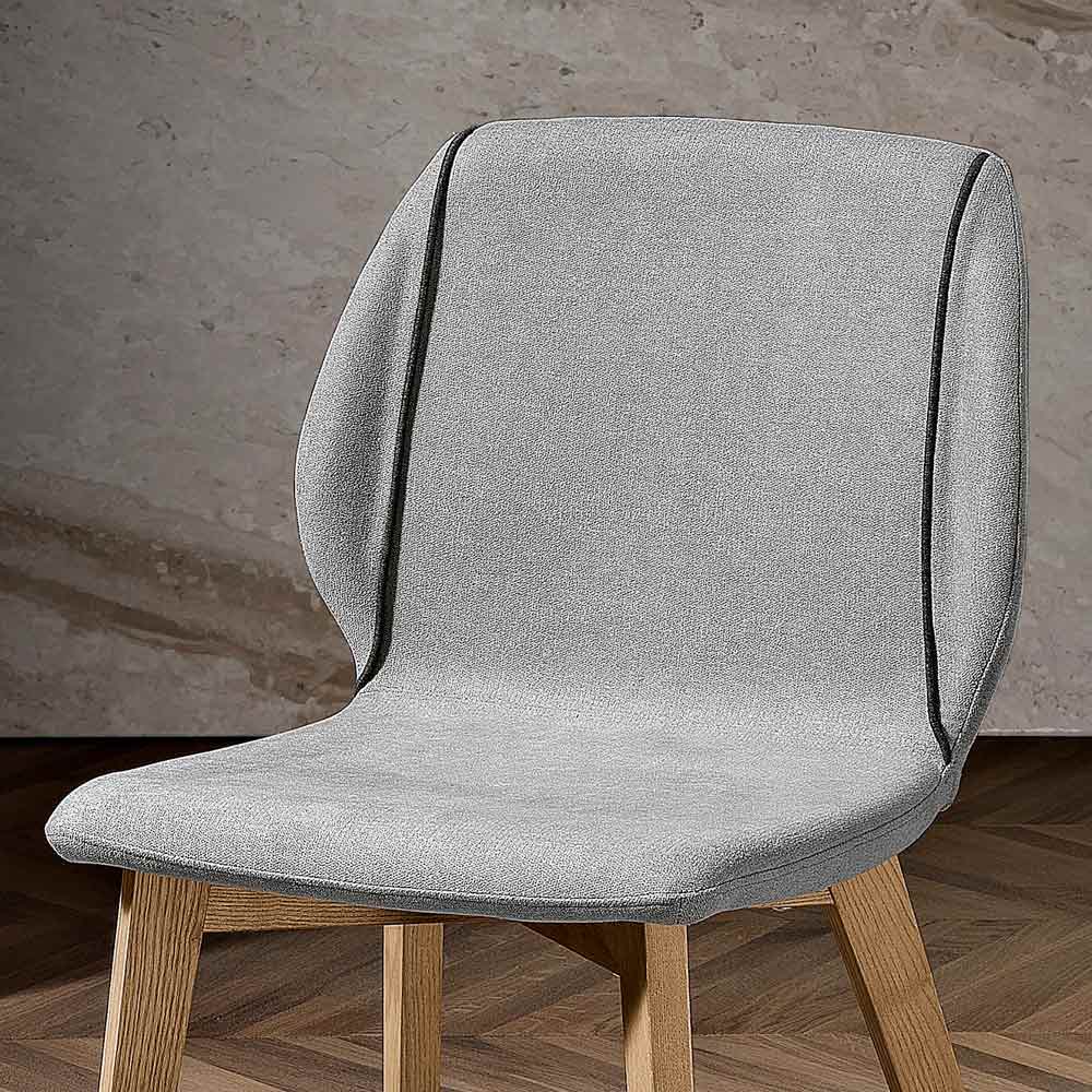 Transforma tu comedor en un espacio más cómodo y elegante con la moderna silla monocasco con asiento tapizado en tejido hidrófugo de colores con ribetes disponible en diferentes variantes de color:
