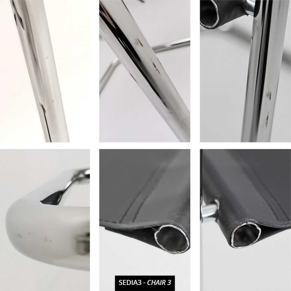 Moderna silla para salas de reuniones o conferencias en metal cromado y cuero regenerado negro.