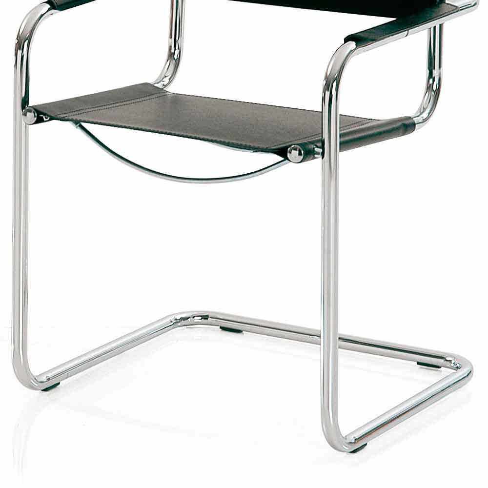 La silla Cirillo para salas de reuniones o salas de conferencias con reposabrazos es ideal, ya que refleja todas estas características; Viene con un marco y asiento de metal cromado , respaldo y brazos en cuero regenerado negro.