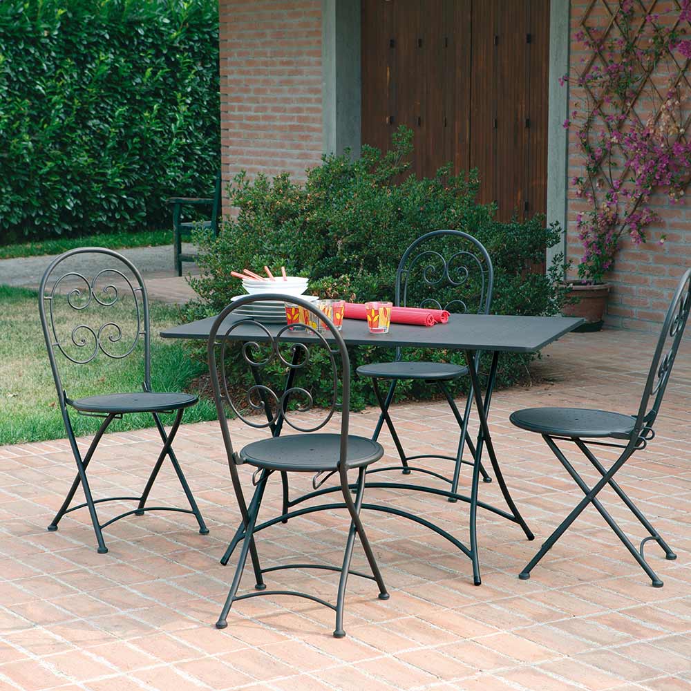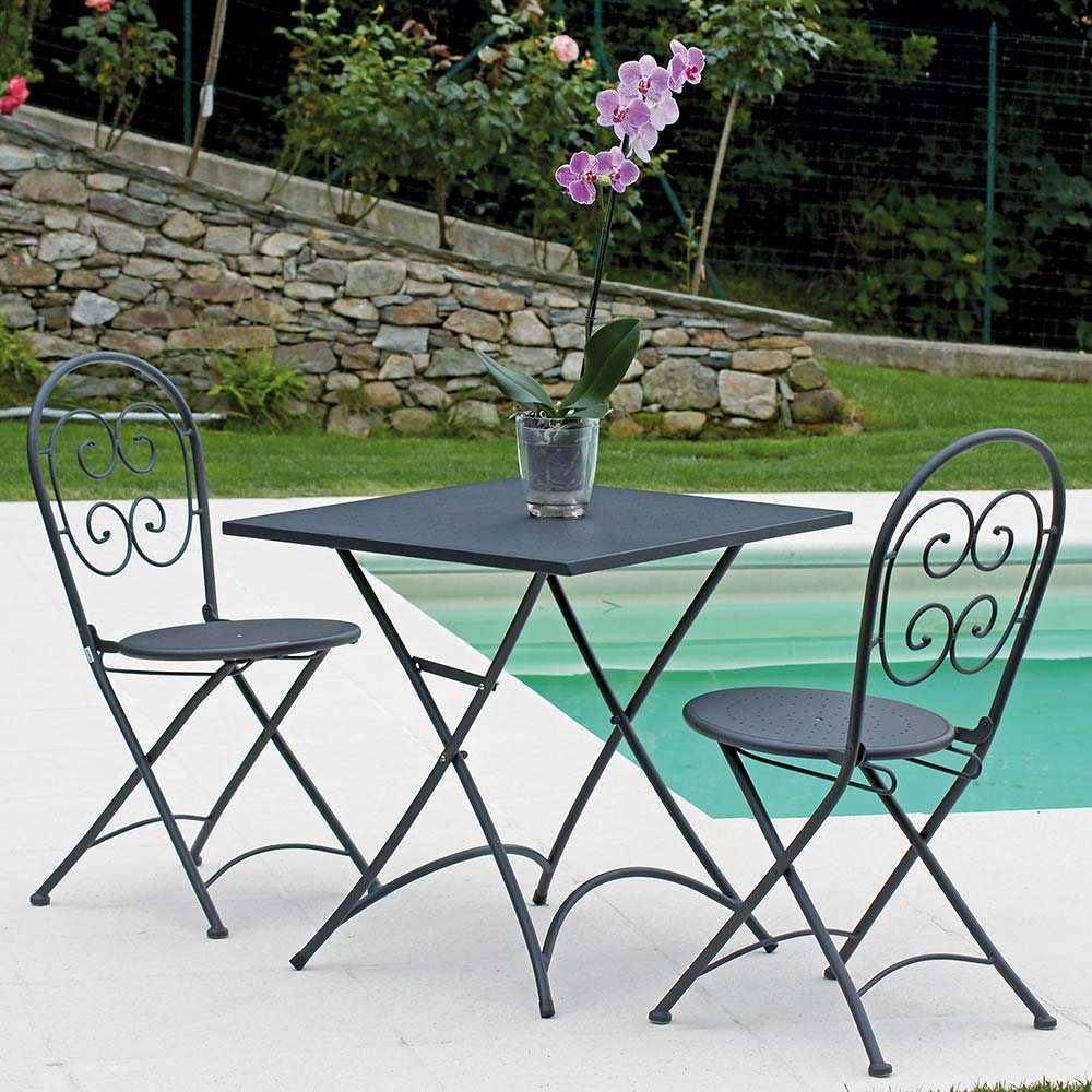 Sillas de jardín fabricadas en hierro acabado gris antracita con tratamiento antioxidante , ideales para amueblar tus espacios exteriores con un toque deestilo únicoy unamarcada personalidad moderna.La sencillez de las formas y la sobriedad de los matices cromáticos la hacen especialmente versátil gracias a las reducidas dimensiones, la ligereza y la manejabilidad de su estructura. Lo que nace es, por tanto, unproducto único en su esencialidad, capaz de valorizar el entorno que lo rodea aportando untoque exclusivo y fascinante.