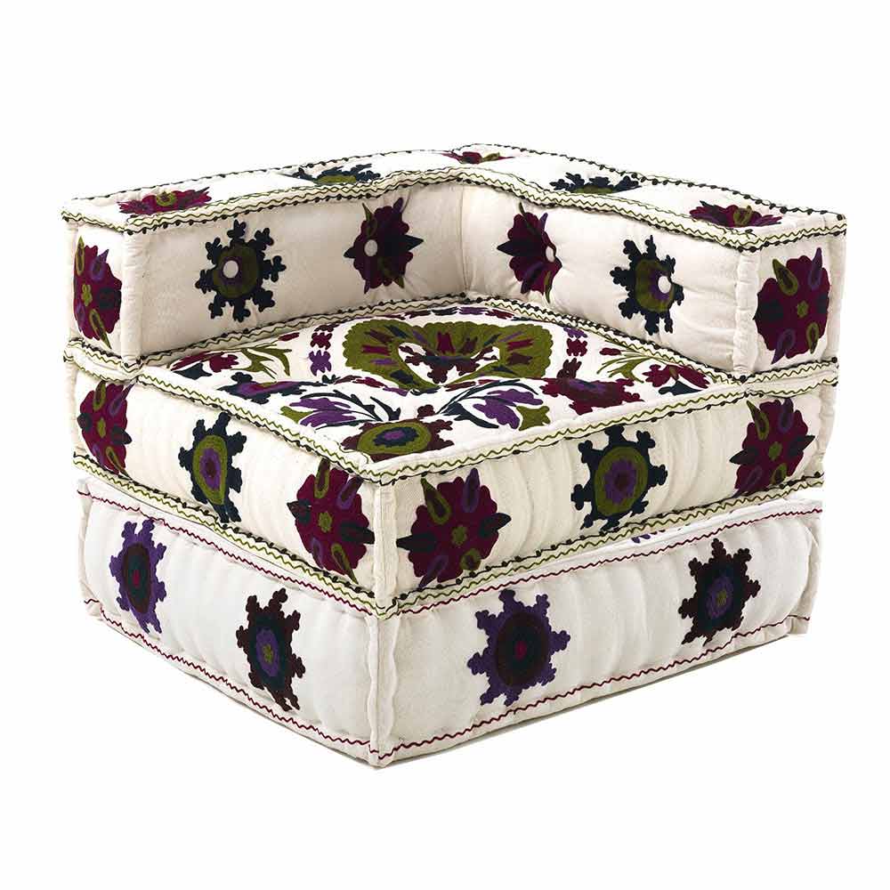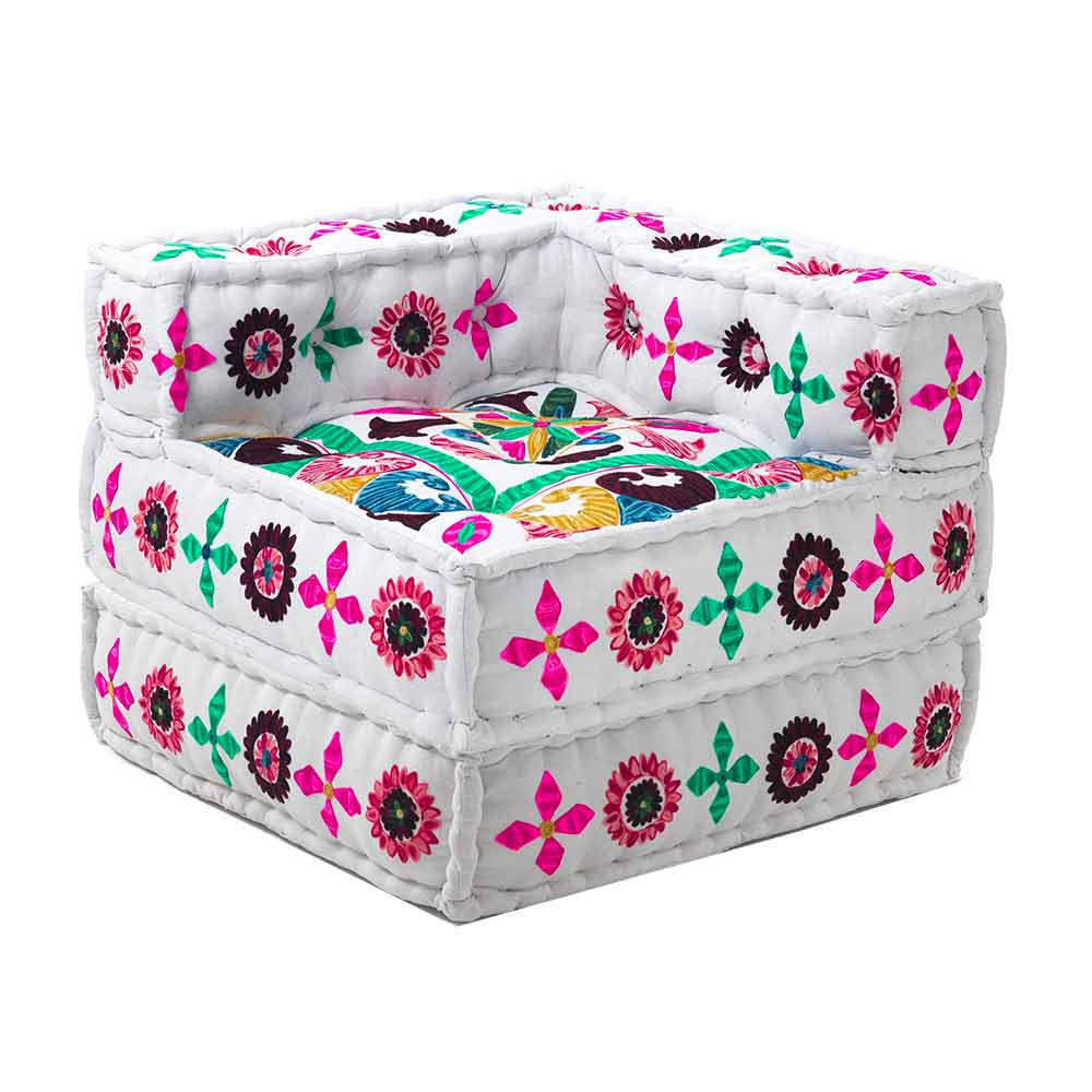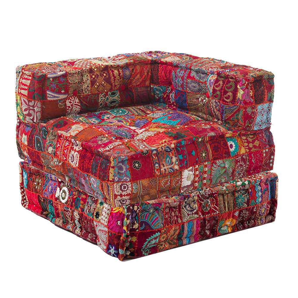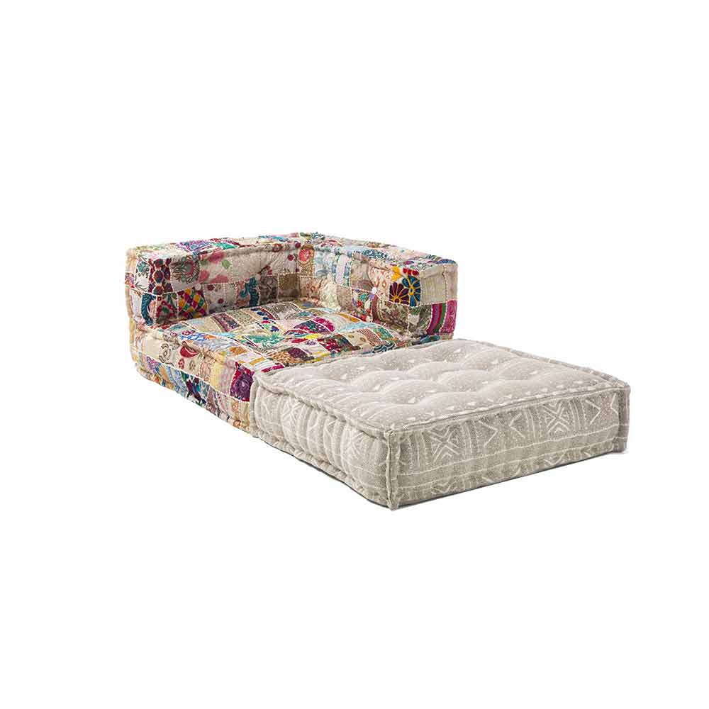 Sillón chaise longue de diseño étnico en algodón patchwork de colores.