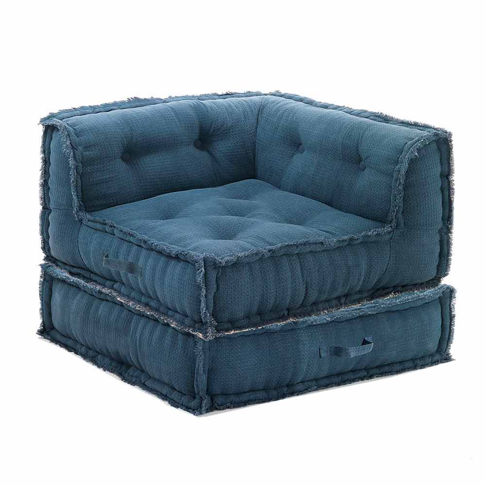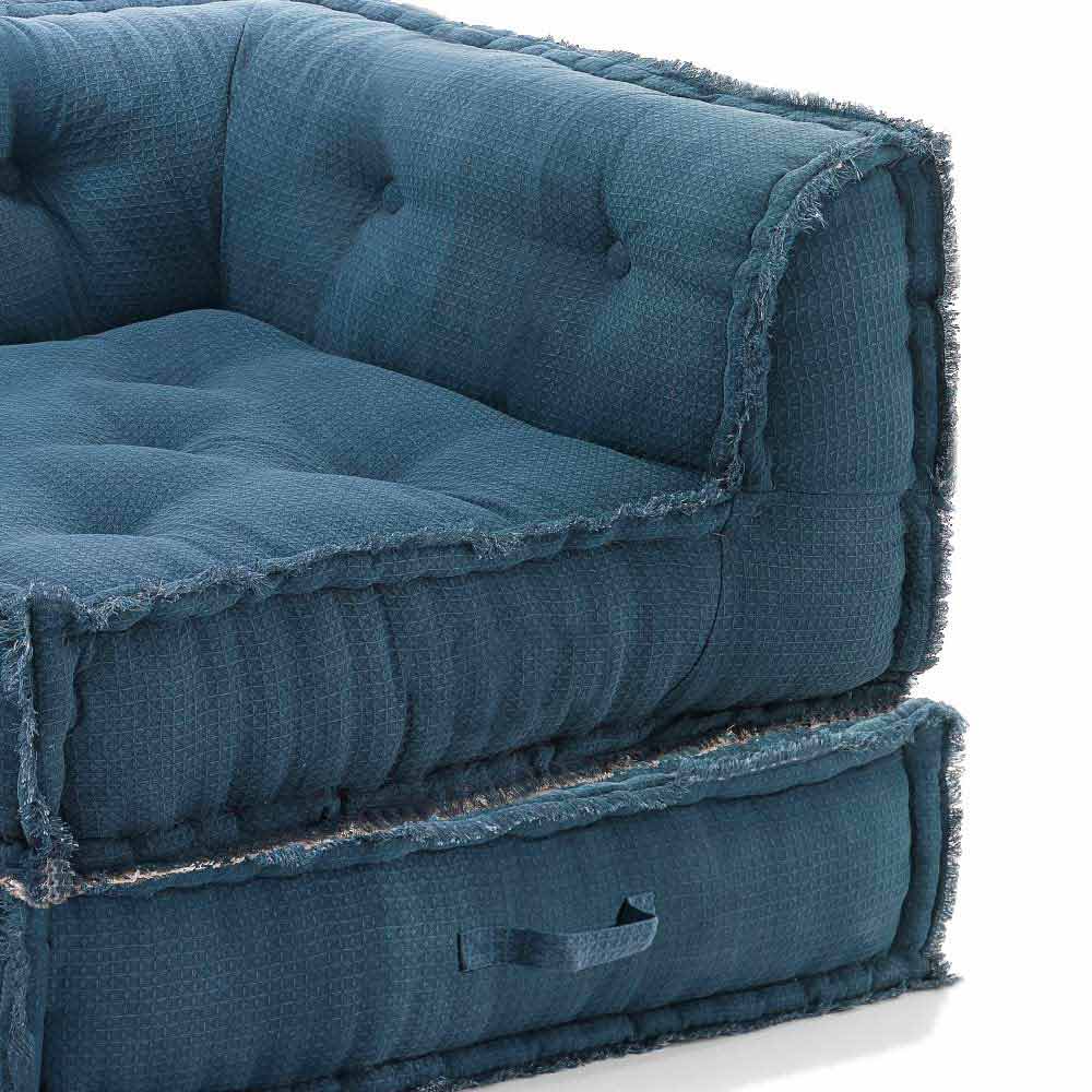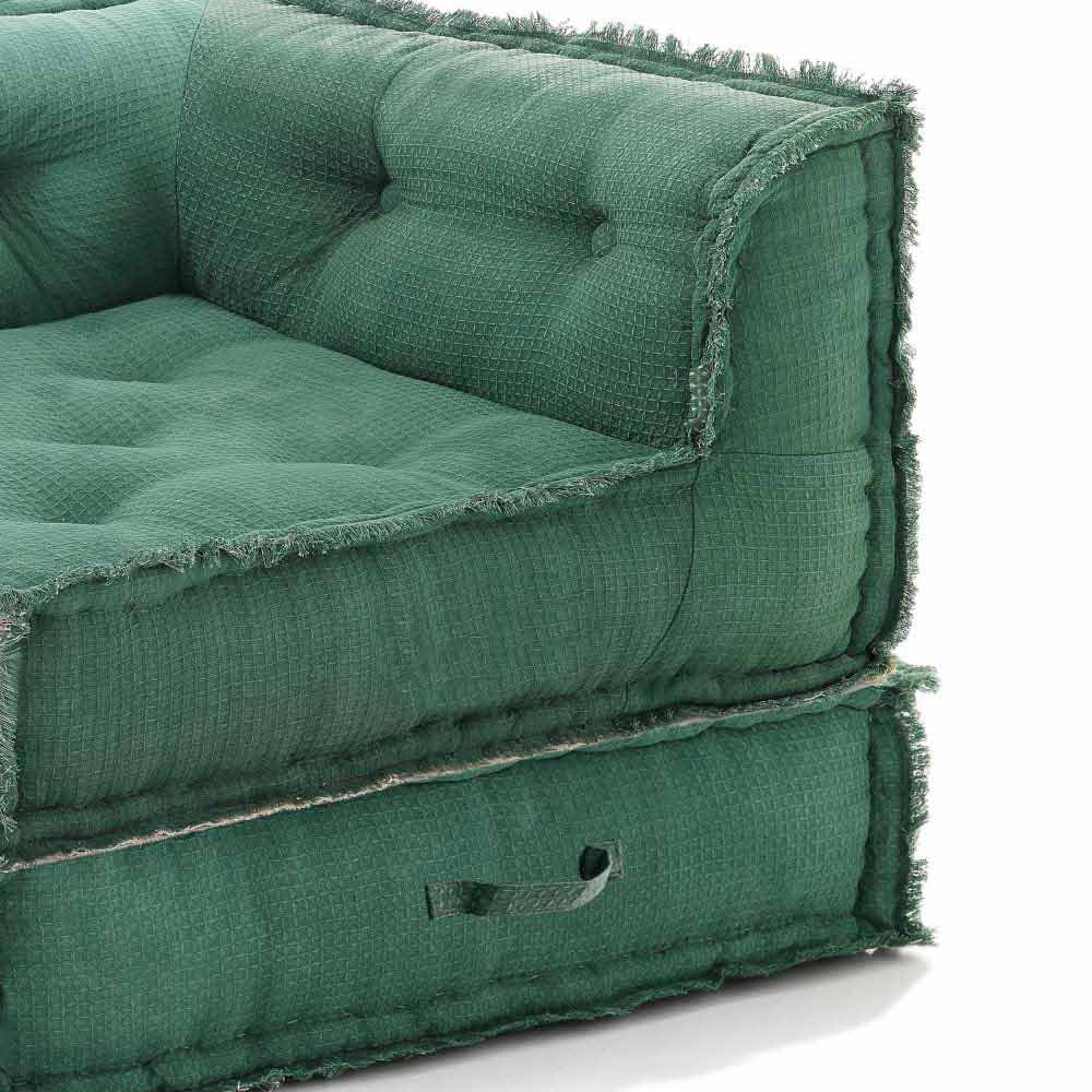Sillón chaise longue de diseño étnico en esquina, producido en algodón gris, verde o azul.