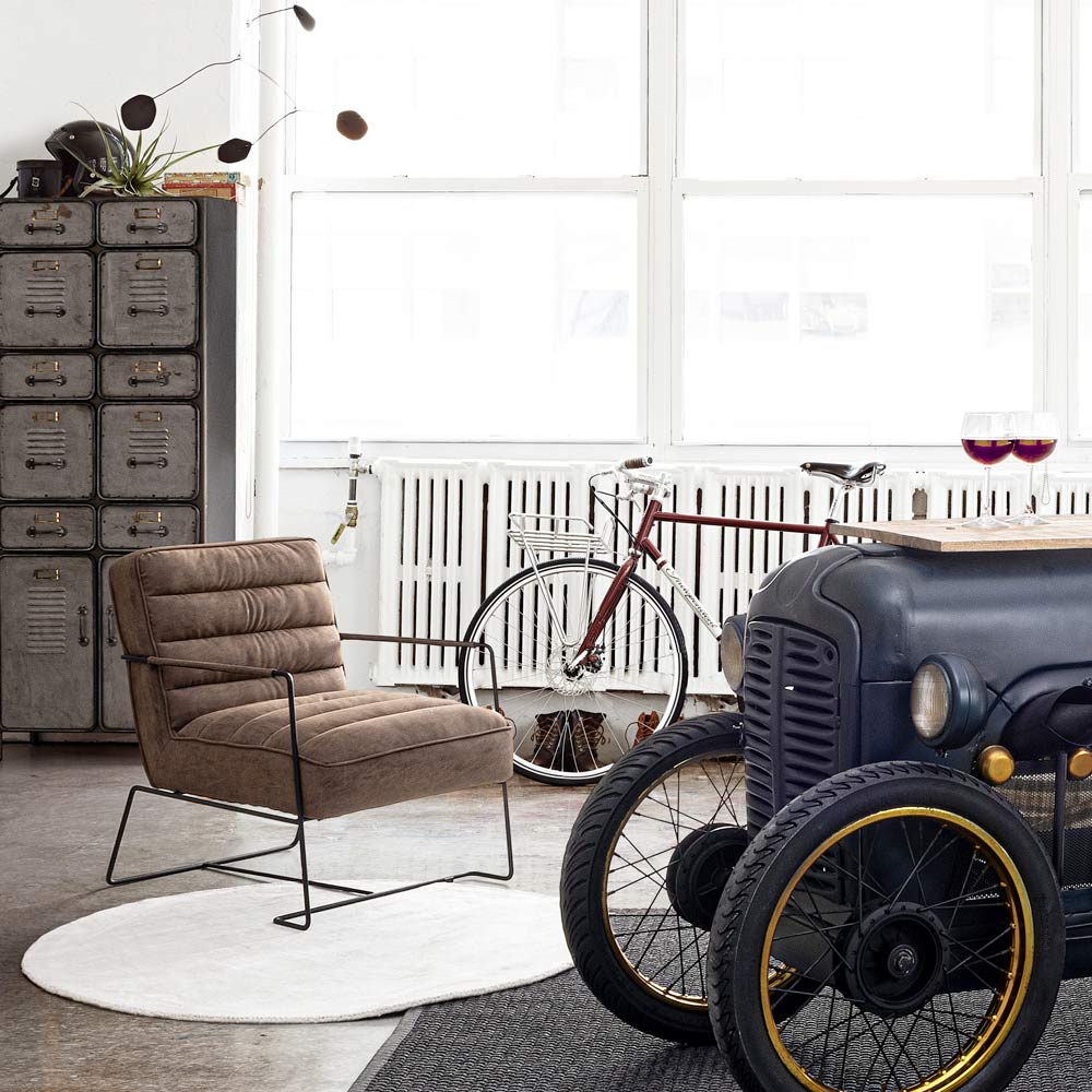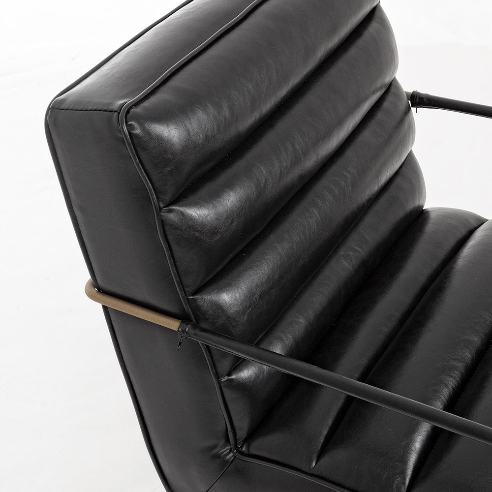 Sillón de diseño clásico en acero y asiento en ecopiel negra o marrón.