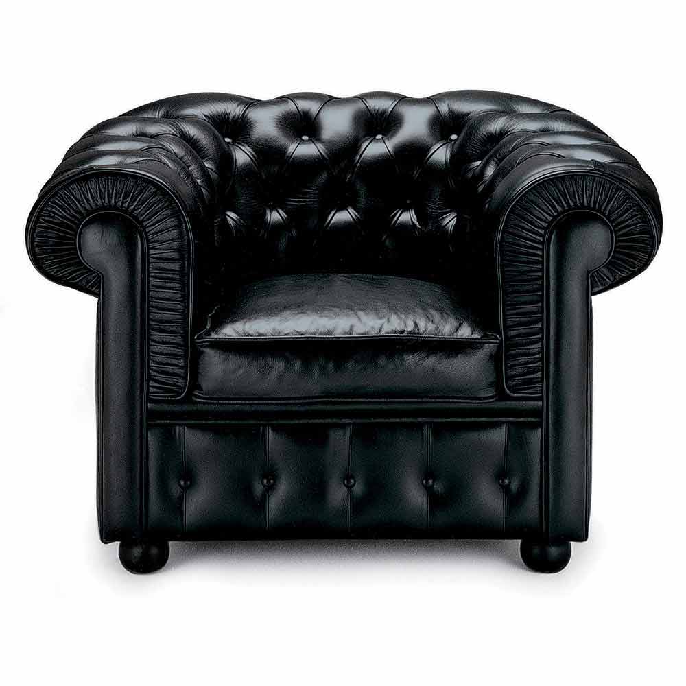 Sillón clásico de cuero con pies de madera fabricado en Italia.