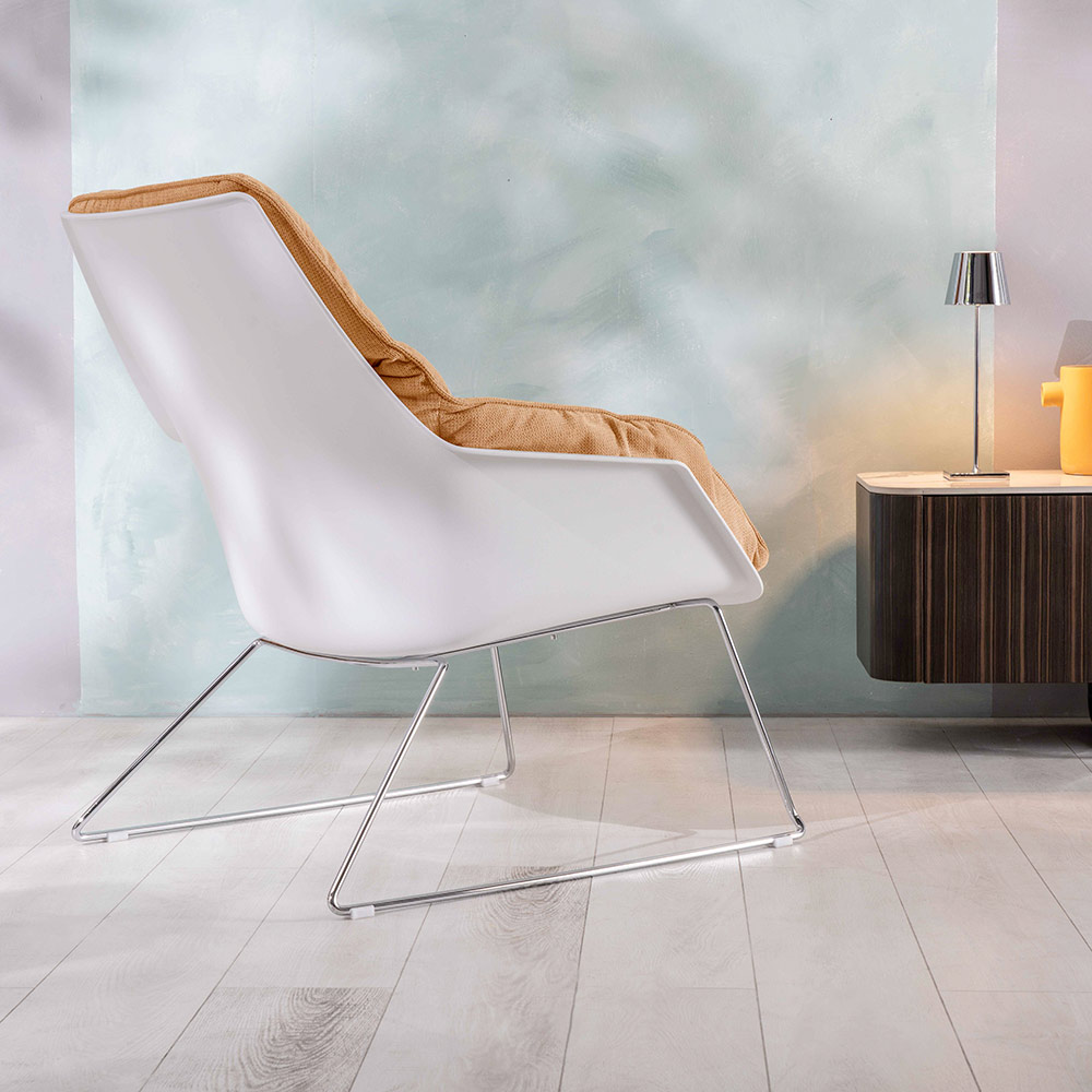 Diseñado para acoger el cuerpo con total comodidad y relajación gracias al generoso acolchado, este es el sillón que invita a sentarse y experimentar su comodidad. La estructura fabricada en polipropileno con base metálica se completa con un asiento extraíble y lavable. Divertida y moderna, es ideal para ambientes informales y contract.