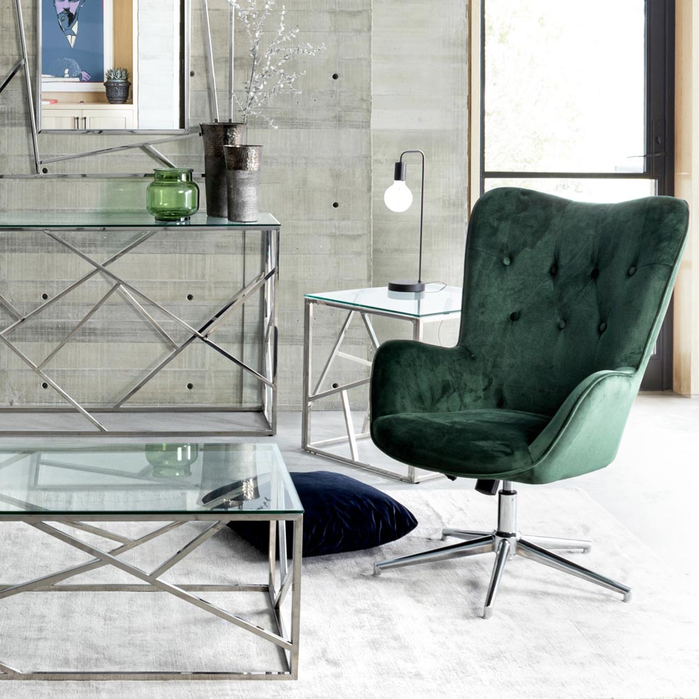 Sillón de acero cromado regulable en altura y asiento efecto terciopelo, 2 acabados.