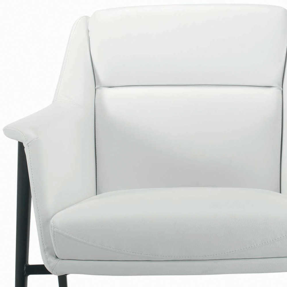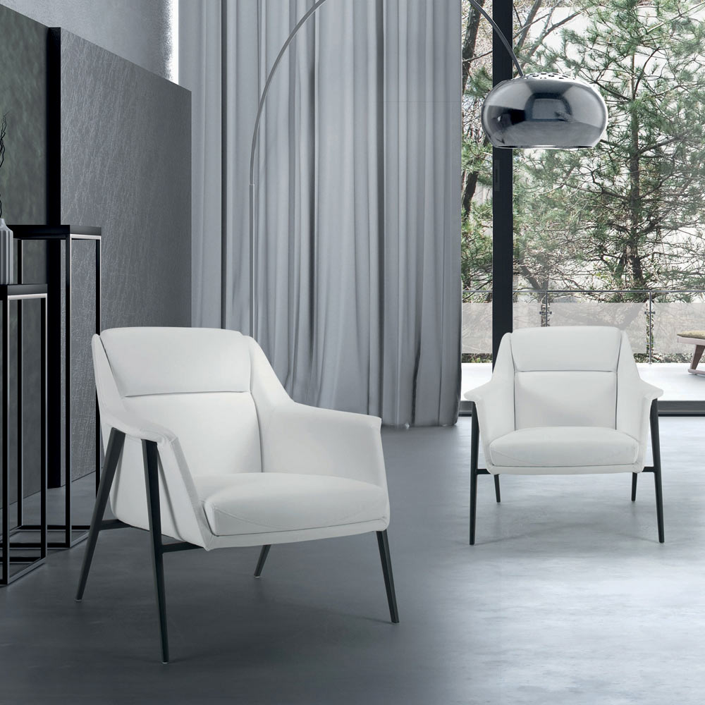 SillónRealizado con estructura de acero A8 Negro y tapizado en ecopiel blanca. Realizado mediante una producción 100% Made in Italy , este sillón tiene una figura particularmente simple y versátil que se adapta fácilmente a cualquier salón o contract moderno gracias a un diseño sobrio y formas esenciales . Ideal para los amantes de un estilo de decoración elegante, esta solución de decoración también cuenta con un revestimiento de ecopiel, un material que maximiza el confort incluso al tacto. Los materiales elegidos y utilizados para realizar este accesorio también permiten obtener un asiento especialmente acogedor , por lo que ideal para pasar maravillosos momentos de confort.