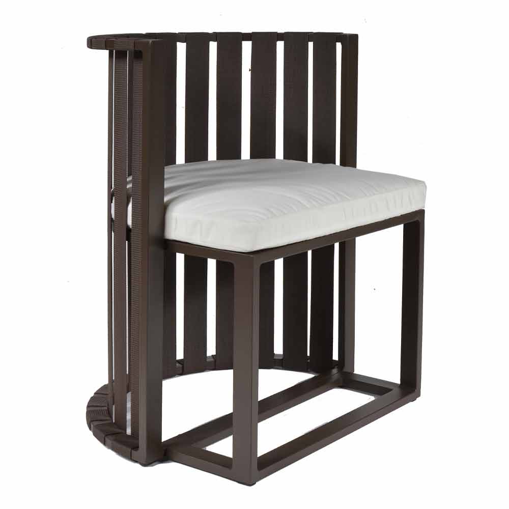 El diseño refinado , elegante y refinado de este sillón de exterior se caracteriza por la alternancia de espacios vacíos y llenos que crea una apariencia visual luminosa y contemporánea.