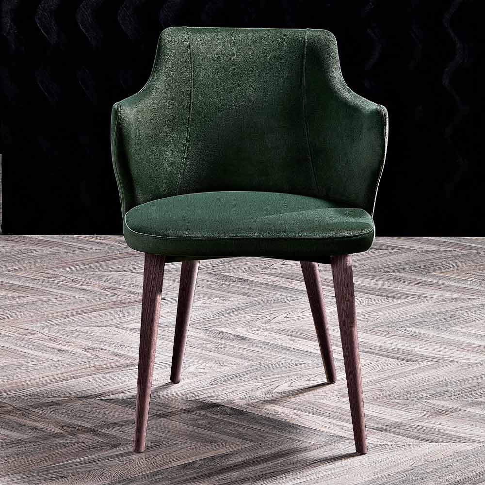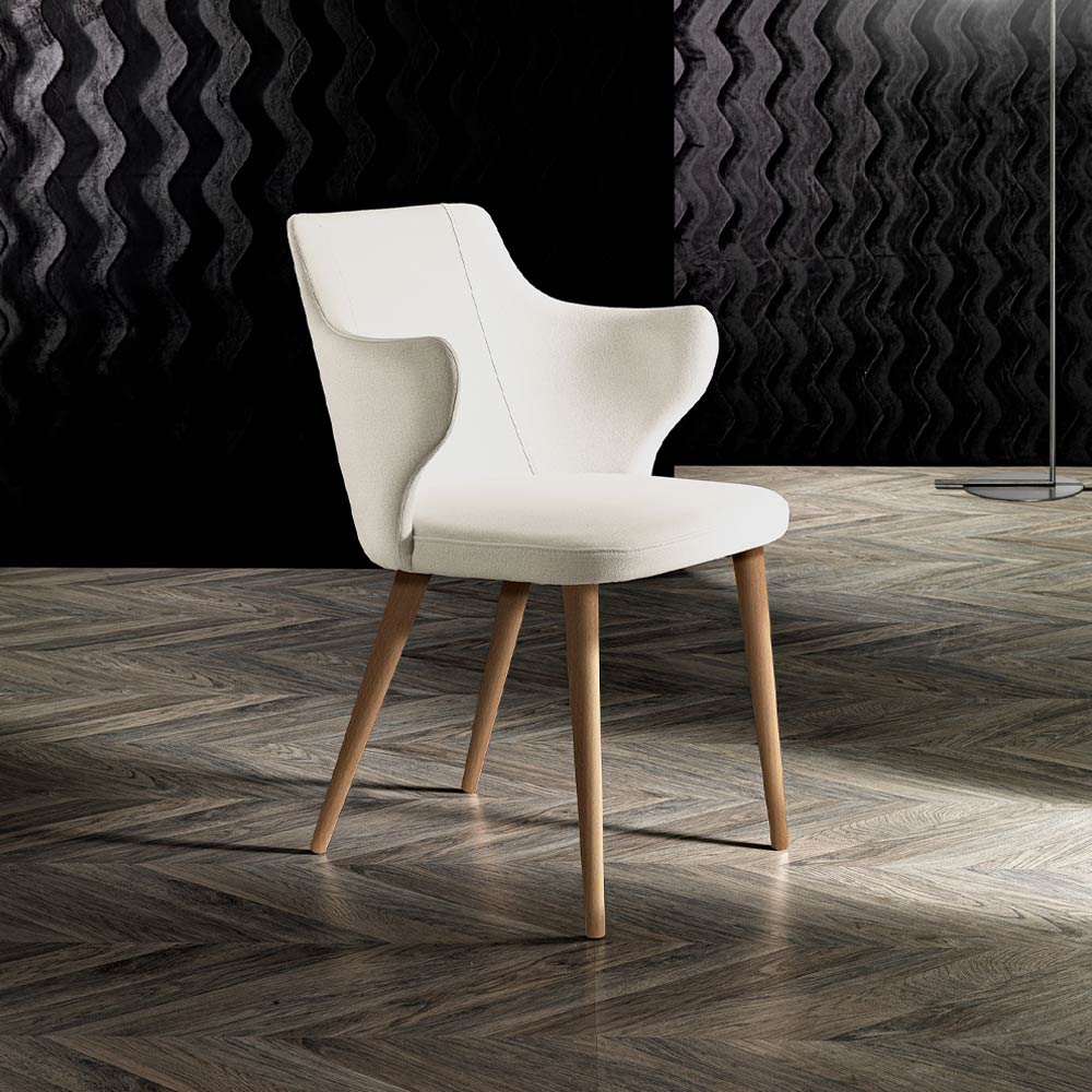 Transforma tu comedor en un espacio más cómodo y elegante con el moderno sillón con asiento tapizado en tela cristal de fácil limpieza y disponible en diferentes variantes de color: