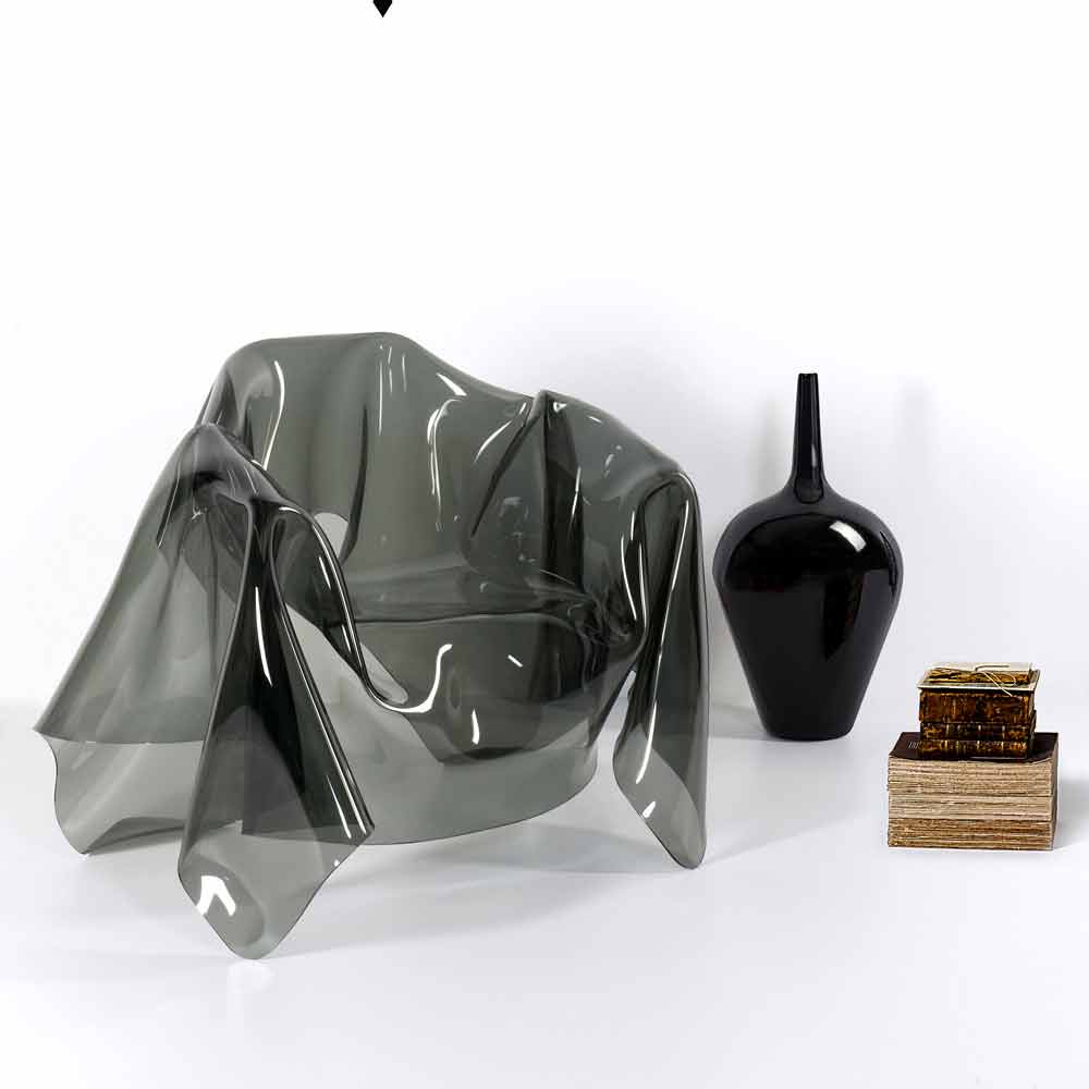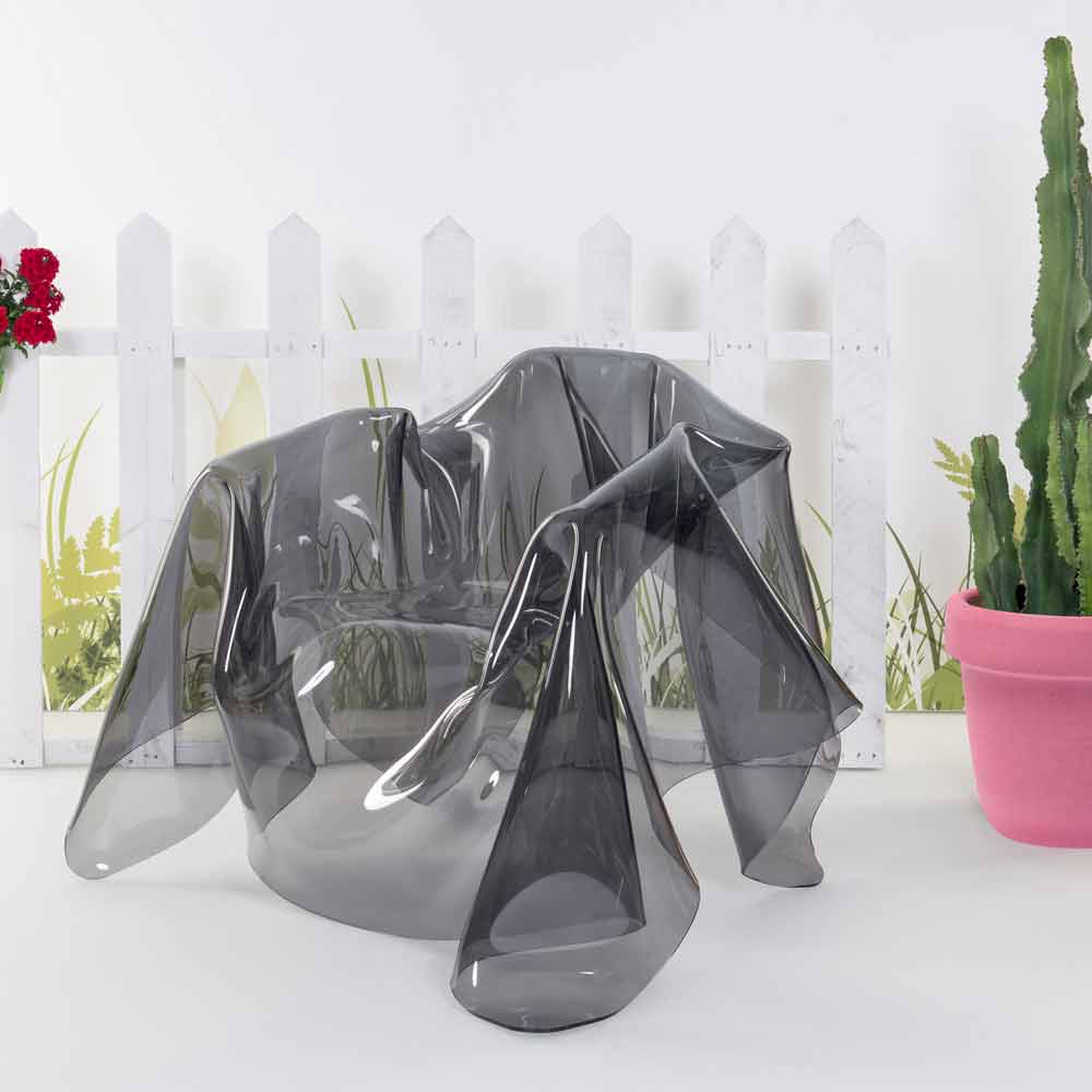 Sillón de diseño moderno en plexiglás ahumado París, hecho en Italia El sillón de París con cortinas es una pieza única, una obra de arte moderno. De una losa de puro polímero 100% virgen de plexiglás de PMMA con un color ahumado totalmente cubierto a mano, se crea un sillón único e irrepetible. El sillón es totalmente autoportante y puede acomodar a 1 persona. Las características físico-técnicas del plexiglass (a prueba de golpes, indeformables, inalterables, aislantes del calor) hacen de este artículo un mueble funcional y funcional, adecuado para cualquier entorno. El brillo y el brillo se mantienen constantes y sin cambios a lo largo del tiempo. El plexiglás de PMMA de polímero virgen utilizado por es no tóxico, hipoalergénico, inodoro y antibacteriano. 100% reciclable Diseñado, diseñado y fabricado en Italia, con materiales italianos.