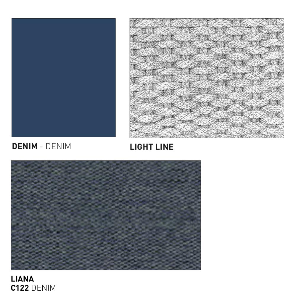 • pierna de mezclilla, tejido ligero y cojín de asiento de mezclilla liana.