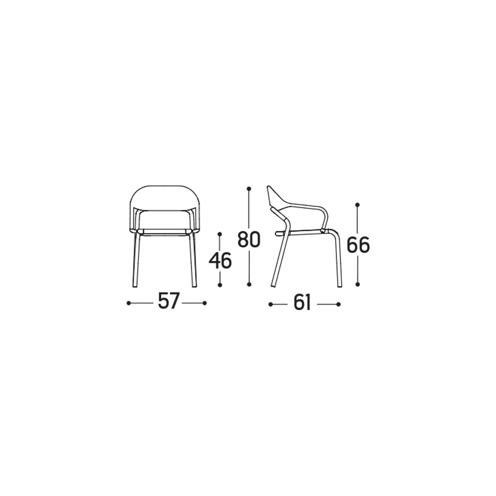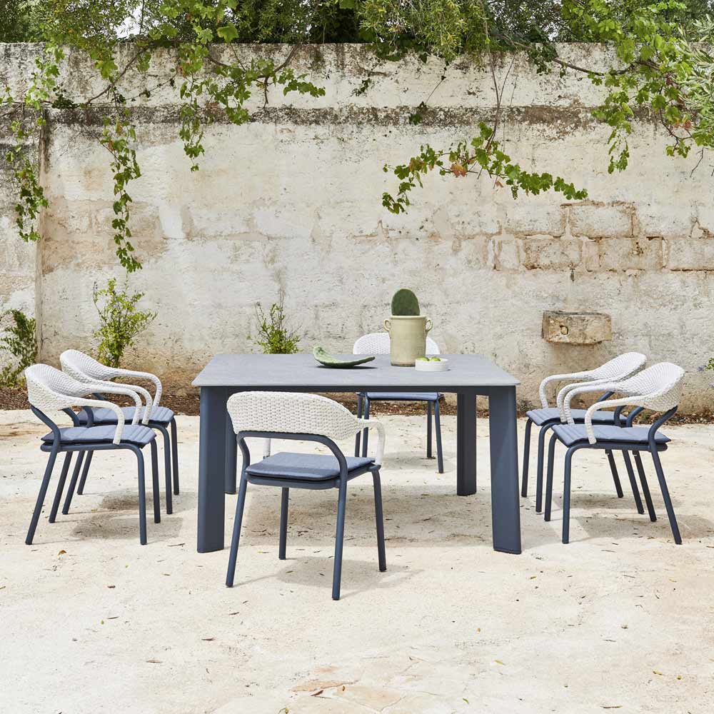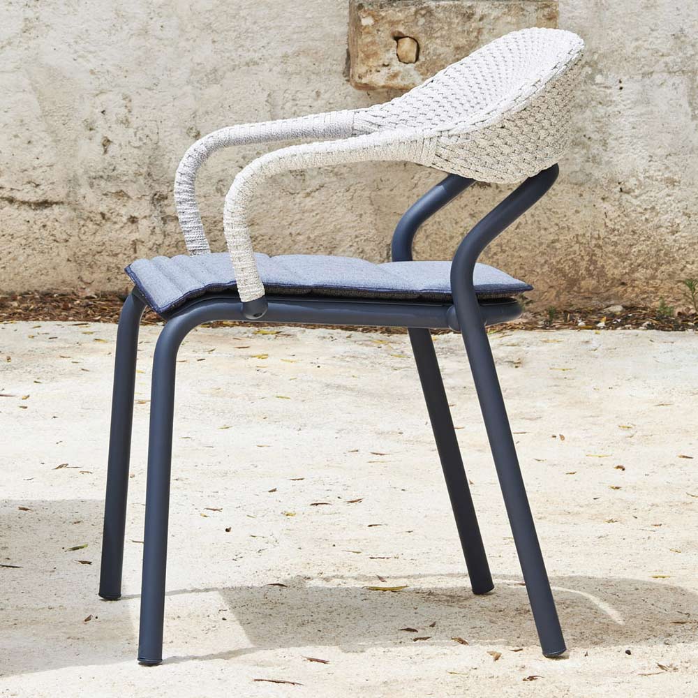 Sillón de exterior con estructura apilable made in Italy con patas de tubo de aluminio pintado en polvo , cojín del asiento con acolchado de goma Dryfeel y respaldo de aluminio , enriquecido por un tejido de cuerdas de polipropileno .