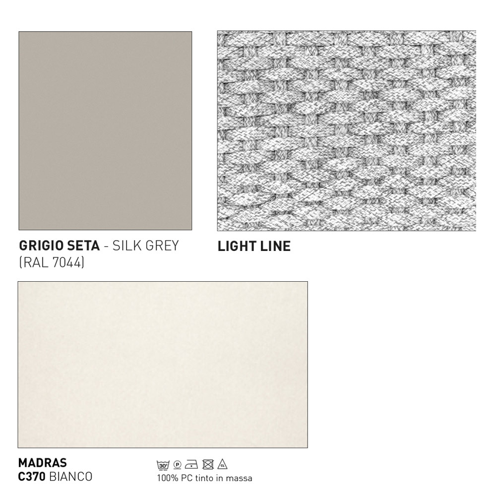 • pata gris seda, tejido light line y cojín de asiento madrás blanco;