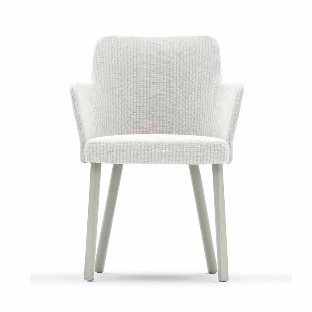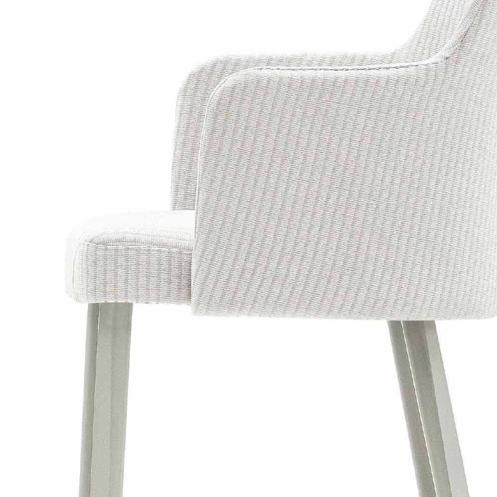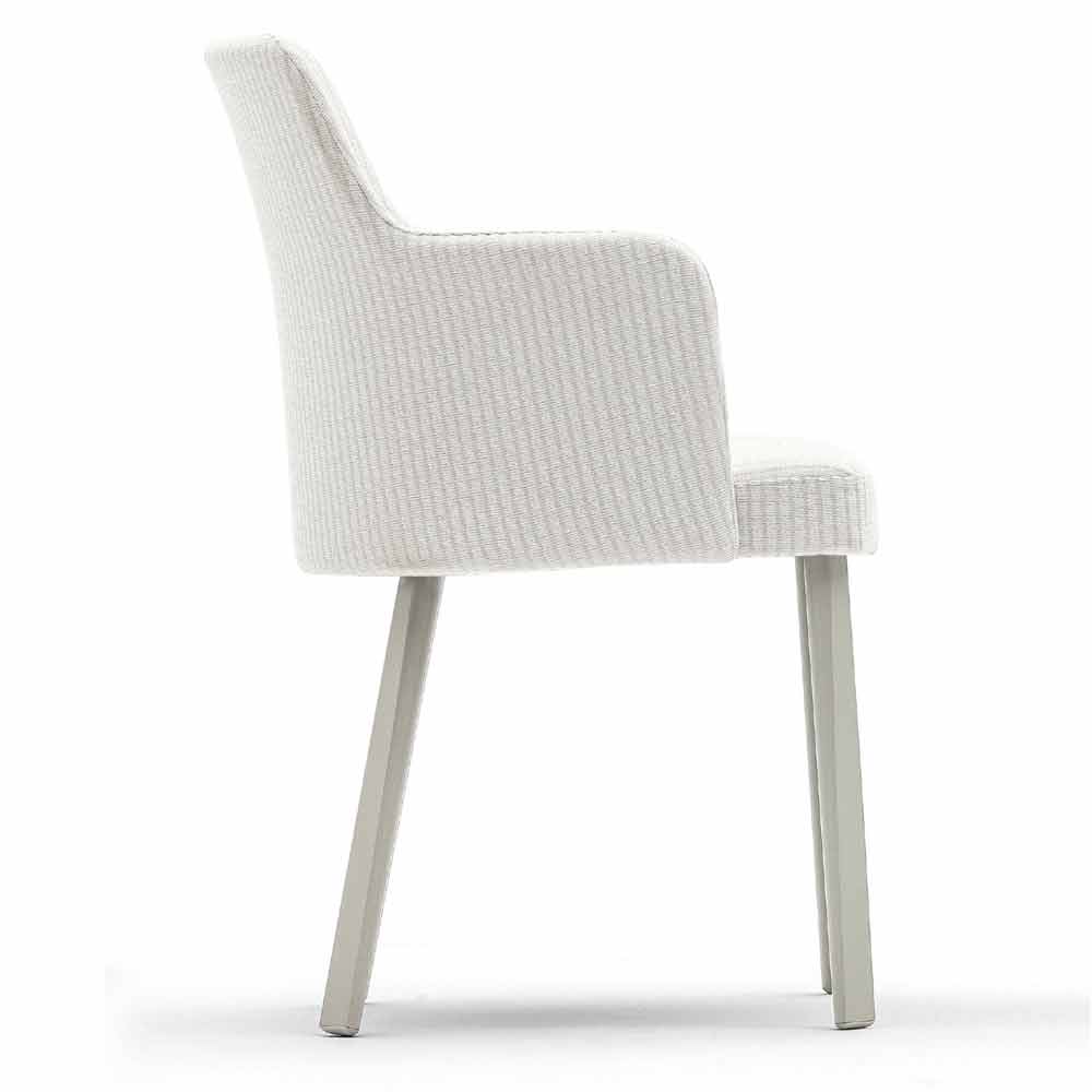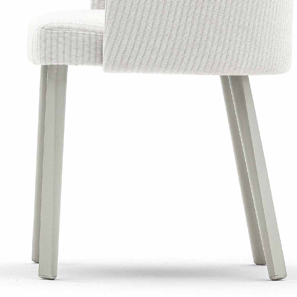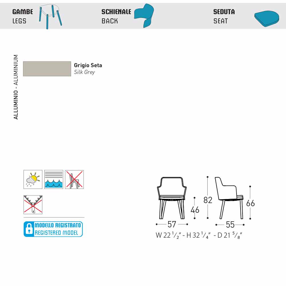 También viene con patas de aluminio pintadas en gris seda y un asiento tapizado en tela con una estructura de asiento de polipropileno.