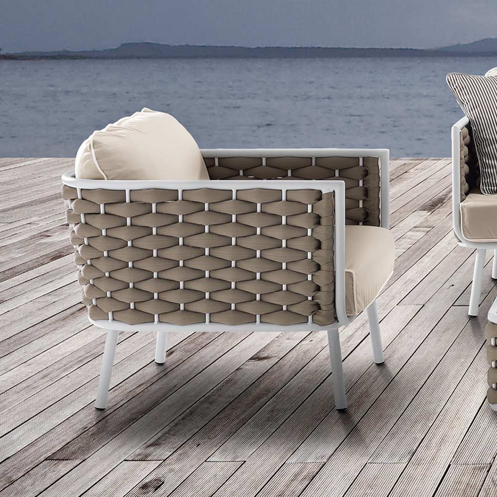 Gracias al uso de materiales especiales de alta calidad, este sillón de exterior garantiza una excelente resistencia a la intemperie, la suciedad, el polvo y las manchas.