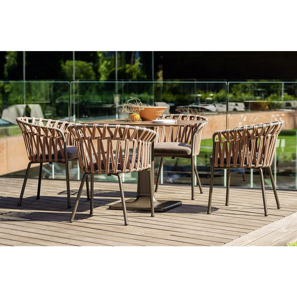 Sillón de exterior con respaldo tejido y base de aluminio, artículo de lujo.