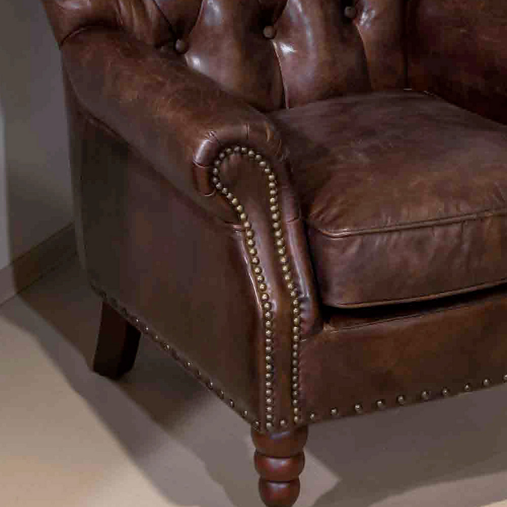 Sillón de salón en piel auténtica de color marrón oscuro , con un estilo clásico inglés. Este sillón forma parte de una colección que puede presumir de una belleza atemporal y de un gusto que resiste el paso de las modas y las sugerencias de las tendencias. Estructuras sólidas y robustas , elaboración capitonnée, punzonado y clavado manual, tapizados en piel auténtica (fior di pelle) , trabajados con un curtido particular, especialmente diseñado para dar al cuero un aspecto vintage y envejecido . Los productos de esta colección se caracterizan por la importancia refinada de las formas y los materiales preciosos que los animan. Son asientos que resultan perfectos para embellecer ambientes de decoración de alto nivel, que hacen de la elegancia y el carácter su prerrogativa.