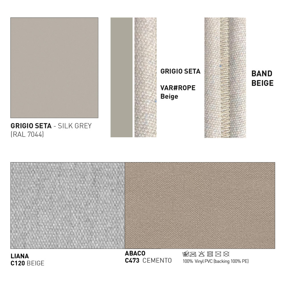 pata y estructura gris seda, tejido beige, cojín de asiento beige, cojines de respaldo beige y ábaco de hormigón;