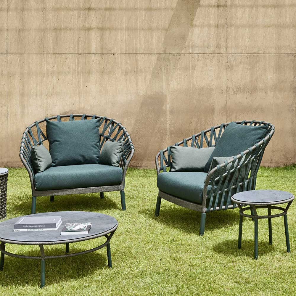 Sillón de exteriorfabricado íntegramente en Italia compuesto por una estructura de aluminio pintado con polvo epoxi , asiento en tejido desenfundable y respaldo enriquecido con una trama de cordones detejido acrílico . Este mueble ha sido diseñado tanto para satisfacer la vista con su estética elegante como para garantizar un confort sin igual.