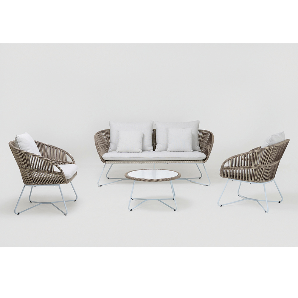 tejido de Olefina/PP ROPE con acabado bicolor blanco perla y capuchino y cojín de asiento y respaldo en