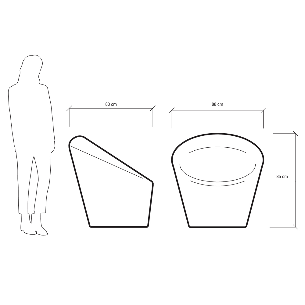 Este sillón de jardín está hecho en polietileno de color fabricado en Italia y es adecuado tanto para uso interior como exterior. La geometría simple de las formas aún mantiene su estilo vanguardista y permite a quienes buscan un toque de nuevo estilo remodelar los espacios habitables. Este sillón es ideal para mil ambientes y para mil escenarios: en casa, en una sala de espera, en un jardín, junto a la piscina y muchas otras situaciones. No teme al aire libre: los rayos UV , las altas y bajas temperaturas, la lluvia y cualquier tipo de agente atmosférico no alteran su encanto, color y forma. También disponible en versión fluorescente: la especial pigmentación fluorescente hace que la baldosa acumule luz natural y artificial durante el día y la libere gradualmente por la noche, produciendo un brillo mágico hasta la mañana. El pigmento fluorescente no es tóxico y es completamente inocuo para la salud.