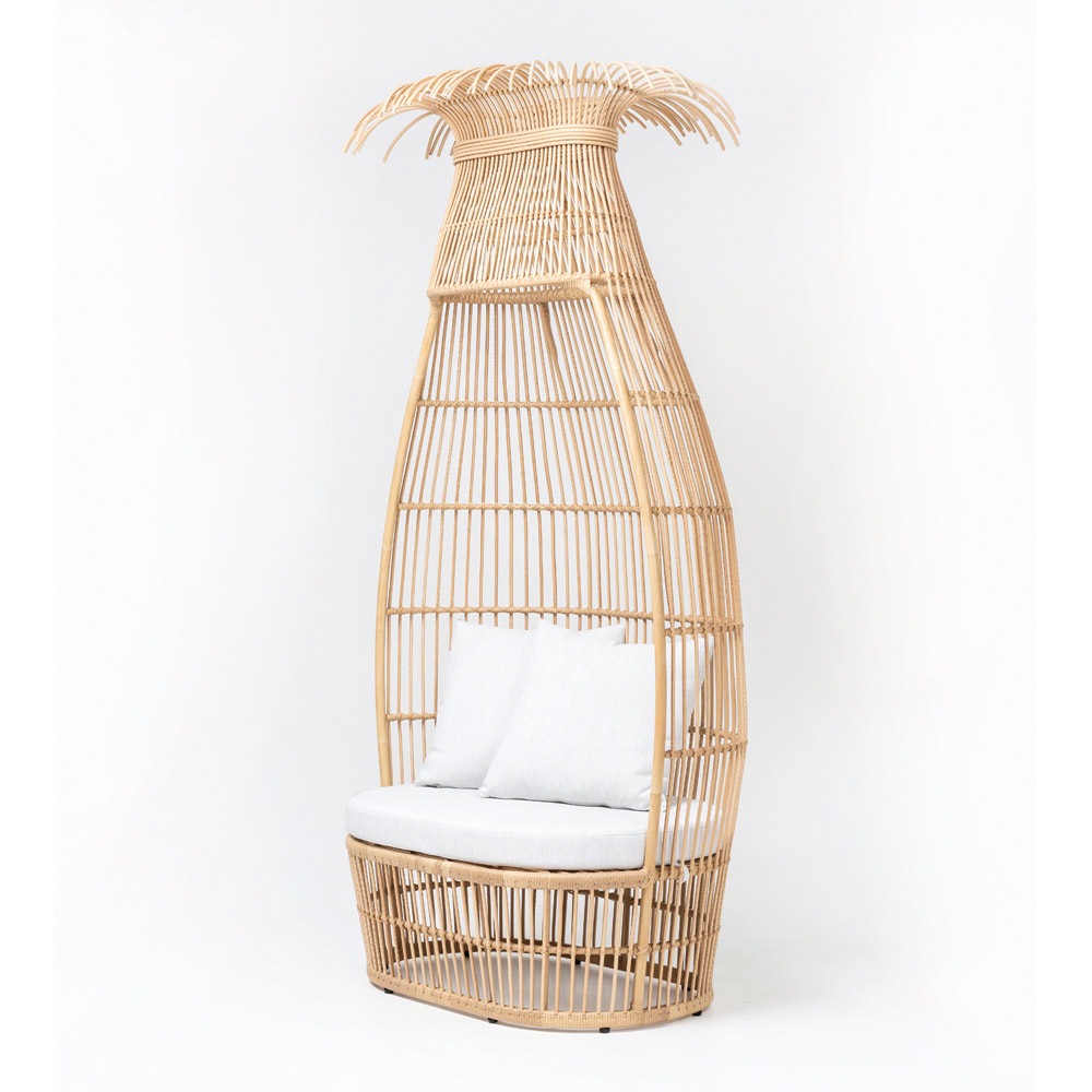 Este sillón de jardín es un verdadero nido de elegancia y comodidad . Su alta estructura ovalada, expertamente elaborada en poli ratán, evoca imágenes de exóticos retiros en la playa y se integra armoniosamente en el entorno exterior. El diseño abierto y aireado garantiza la circulación del aire y la luz, mientras que la forma curva proporciona una sensación de protección y privacidad.
