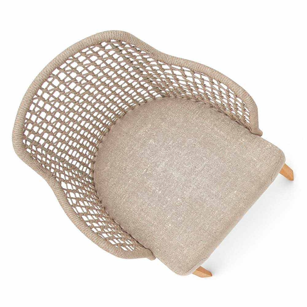 Emma es un sillón de jardín caracterizado por una estructura de fibra sintética tejida a mano con marco de aluminio con recubrimiento de polvo beige o gris oscuro .
